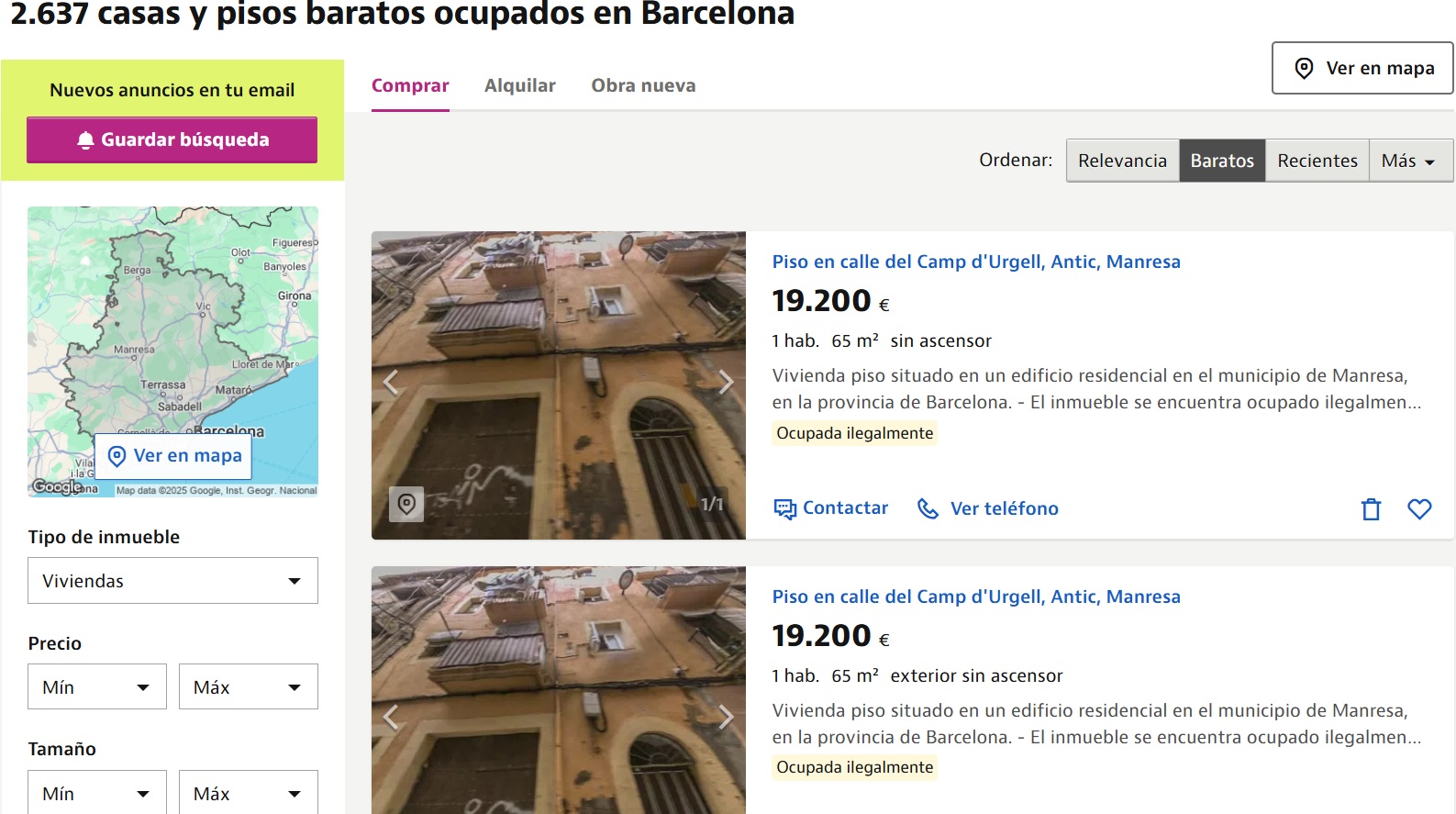 El interés de vendedores y compradores es evidente. Tal y como apuntaba un reciente estudio, el mencionado portal cerró 2024 con 20.464 viviendas okupadas en venta. "Los datos ponen de manifiesto la especial relevancia que tiene este fenómeno", aseguraba entonces su portavoz, Francisco Iñareta, que situaba a Barcelona como la provincia con mayor porcentaje de viviendas okupadas (un 7,6%).