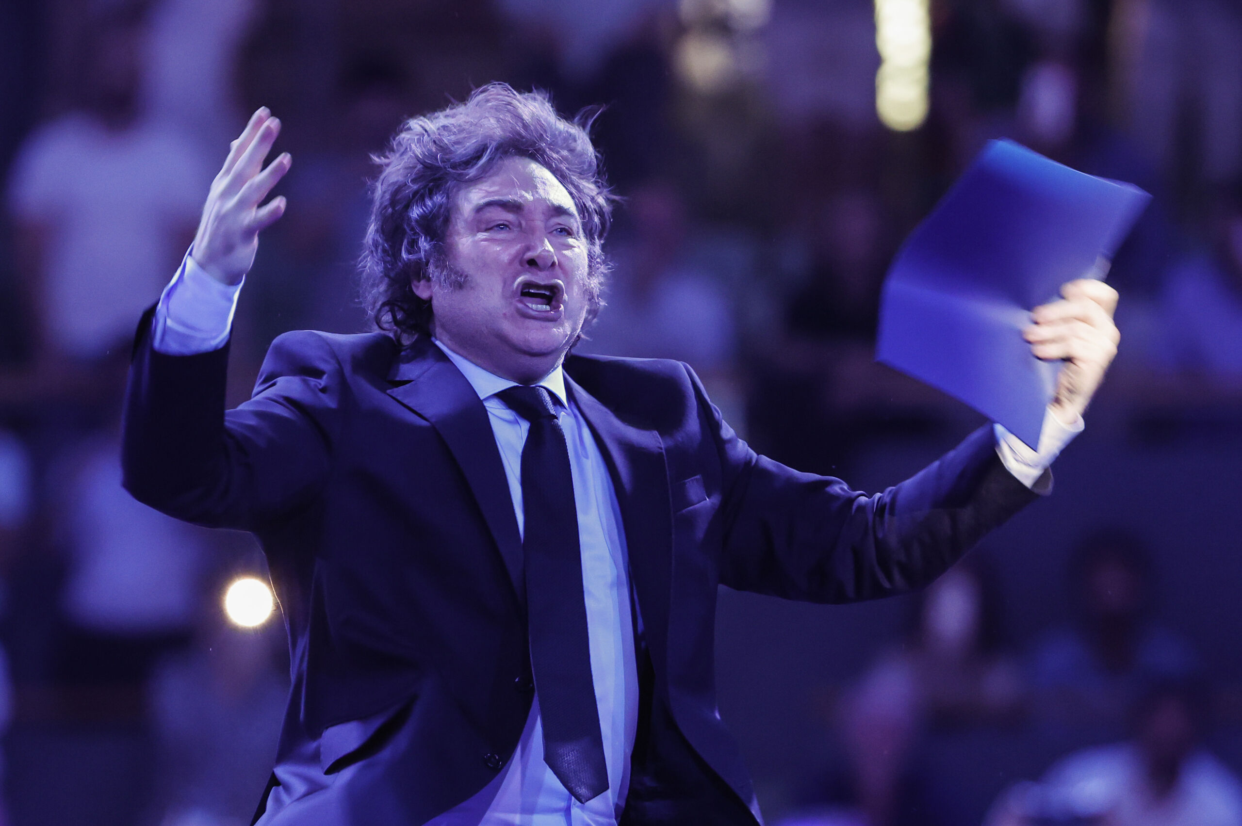 Con la popular canción "Yo soy el león" de La Renga sonando, Milei salió corriendo al escenario acompañado de un estruendoso aplauso por parte de los asistentes, que no tardaron en meterse a coro con Pedro Sánchez al grito de "hijo de puta". "Si quieren zurrar al bandido local, no tengo problema" bromeó Milei en referencia a los cánticos sobre el líder del PSOE. El presidente argentino al grito de "¡viva la libertad, carajo" también le declaró la "muerte al socialismo".