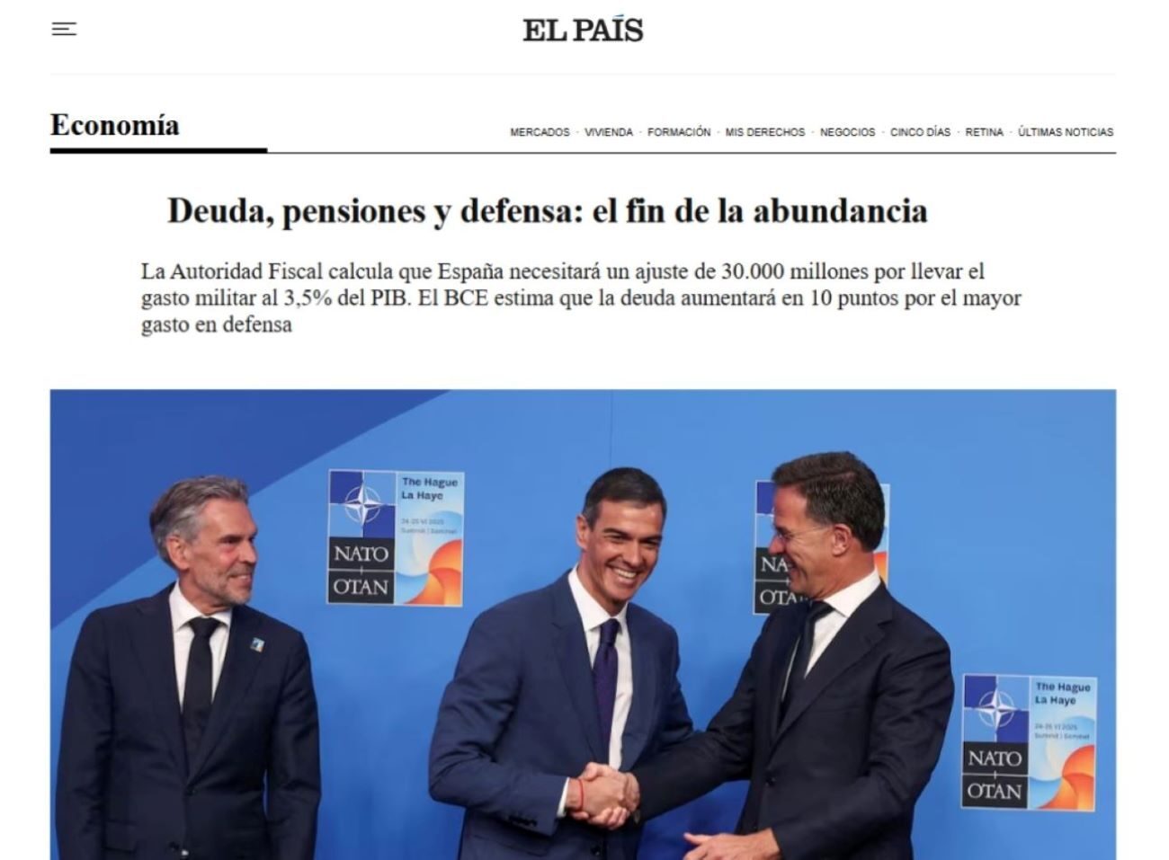 El diario El País publicó ayer una pieza en la que se venía a señalar que los compromisos a los que tenía que hacer frente el Ejecutivo ponían fin a una supuesta bonanza económica que habríamos vivido en España durante los últimos años. "Se acabó la era de la abundancia. La combinación de pensiones, deuda y defensa aboca a España a décadas de austeridad", aseveraba el autor del sesudo análisis al inicio de la noticia.
