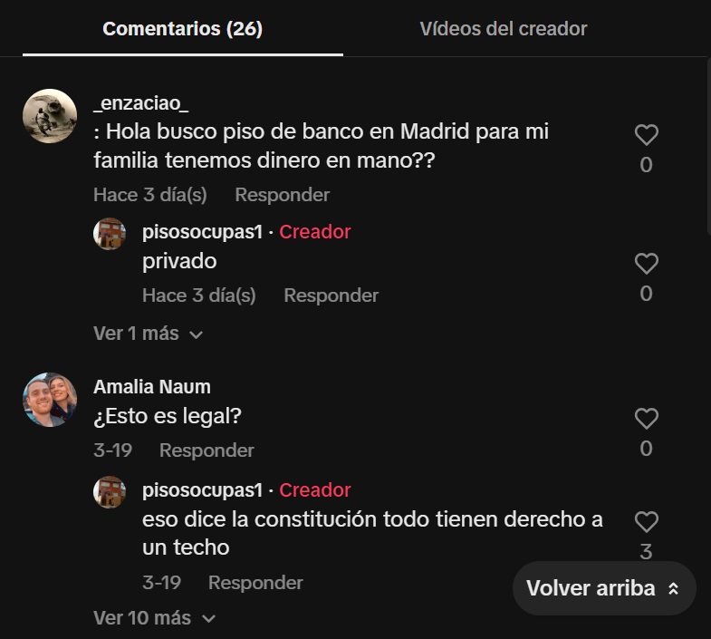 Junto a los interesados se encuentran también los curiosos y los indignados, que citan la cuenta de la Policía Nacional en comentarios o se preguntan si "esto es legal". "Eso dice la Constitución: todos tienen derecho a un techo", reacciona de inmediato el anunciante.