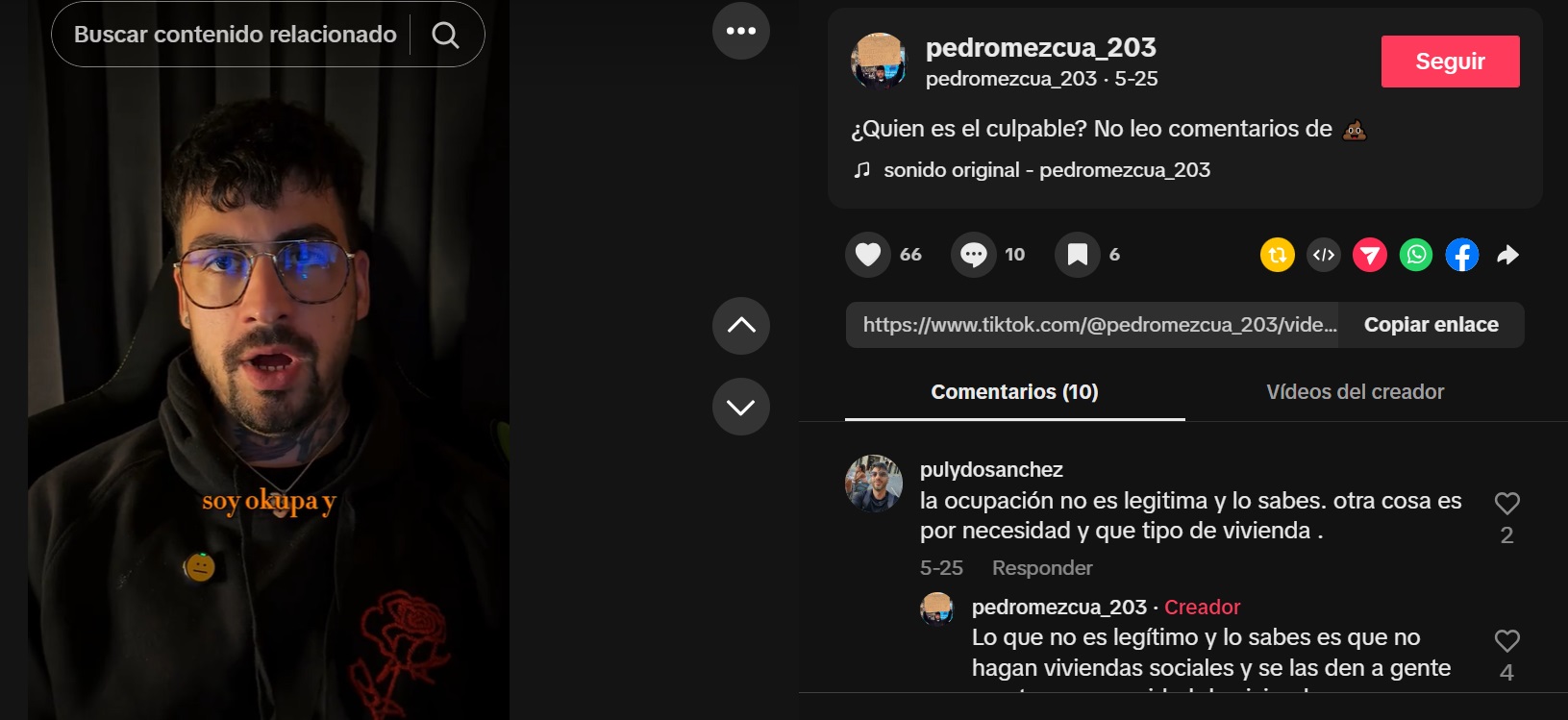 Su formato de video corto y adictivo atrae a millones de usuarios por minuto, lo que la convierte en el nicho perfecto para quienes buscan seguidores, pero también clientes, ya que, tal y como ha denunciado en numerosas ocasiones LM, actualmente existe en España un auténtico mercado okupa en el que las mafias venden las llaves de los inmuebles que previamente han conseguido okupar.