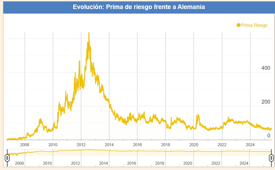 ¿Os acordáis de cuando la prima de riesgo era un grave problema para España? Pues YA NO. 👇 pic.twitter.com/I6JgF9RnVK