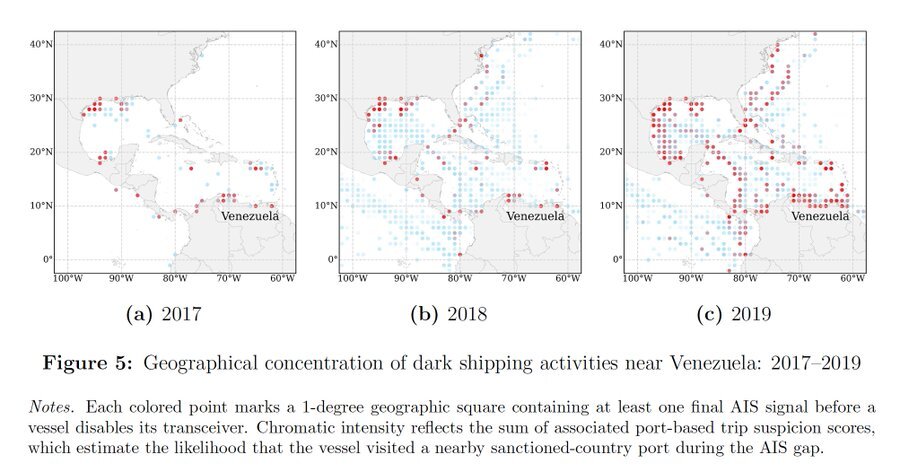 Especialmente relevante para el ámbito hispanoamericano son las rutas del "dark shipping" de petróleo venezolano, que se pueden comprobar en los siguientes recursos del estudio: