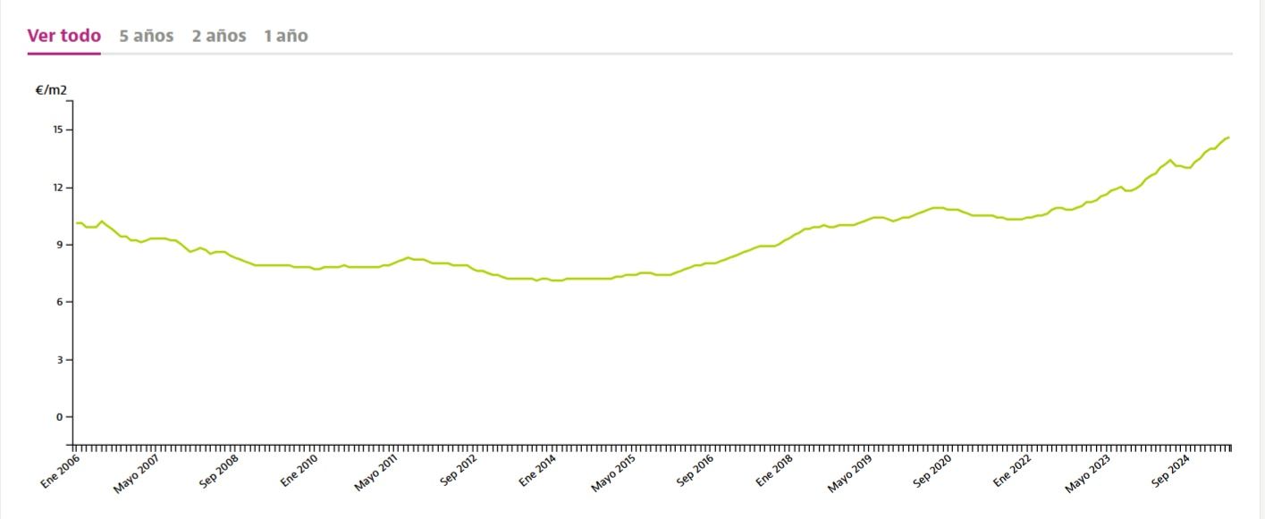 Del mismo modo, las cifras sobre la evolución del precio de la vivienda en alquiler en España demuestran que en el mes de junio el precio del metro cuadrado se situó en este período en los 14,6 euros. Así, se experimentó una subida del 1% en relación con el mes anterior. Del mismo modo, frente a junio de 2024, el precio de la vivienda en alquiler ha aumentado un 9,7%, siendo esta escalada del 46% respecto a enero de 2019.