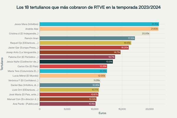 El 1 de junio de 2024, The Objective publicó un informe basado en datos facilitados por RTVE, revelando los ingresos de los analistas más destacados de la temporada 2023/2024. Este ranking, que contrasta con la actual opacidad, incluye a los 18 profesionales mejor compensados, con sus montos y medios asociados: