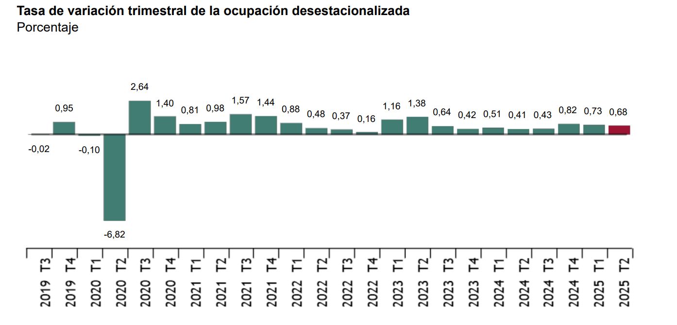 Los ocupados aumentan en 503.300 personas en el trimestre, pero si se desestacionaliza ese crecimiento sólo es de un 0,68%. De hecho, el incremento del empleo en términos interanuales, con 584.000 nuevos ocupados, es el segundo peor de los últimos cinco años.