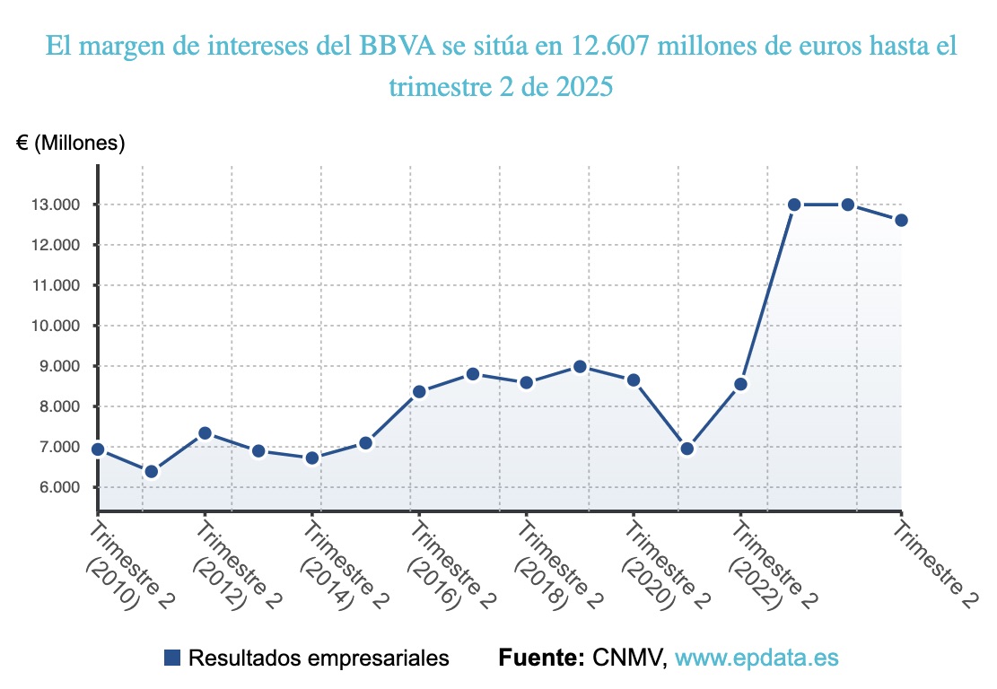 En concreto, el margen de intereses alcanzó 12.607 millones de euros, un 10% más interanual, con crecimientos de actividad destacados en España y México, del 6,3% y del 11,7%, respectivamente.