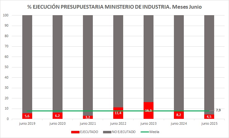 El caso de Industria condensa el problema. Es un patrón recurrente: 5,6% (2019), 6,2% (2020), 3,2% (2021), 11,4% (2022), 16,3% (2023), 8,2% (2024) y 4,5% en 2025. La media del periodo ronda el 7,9%. No hablamos de un bache puntual, sino de un hábito de gestión.