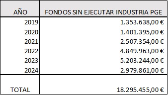 Los fondos sin ejecutar en el Ministerio de Industria entre 2019 y 2024 alcanzan la friolera de 18.295 millones de euros. Para la economía real, eso es capital inmovilizado que debía haberse transformado en maquinaria, procesos, empleo cualificado e innovación. Es la diferencia entre que una convocatoria cierre y pague a tiempo o que la empresa renuncie, o llegue tarde y más cara.