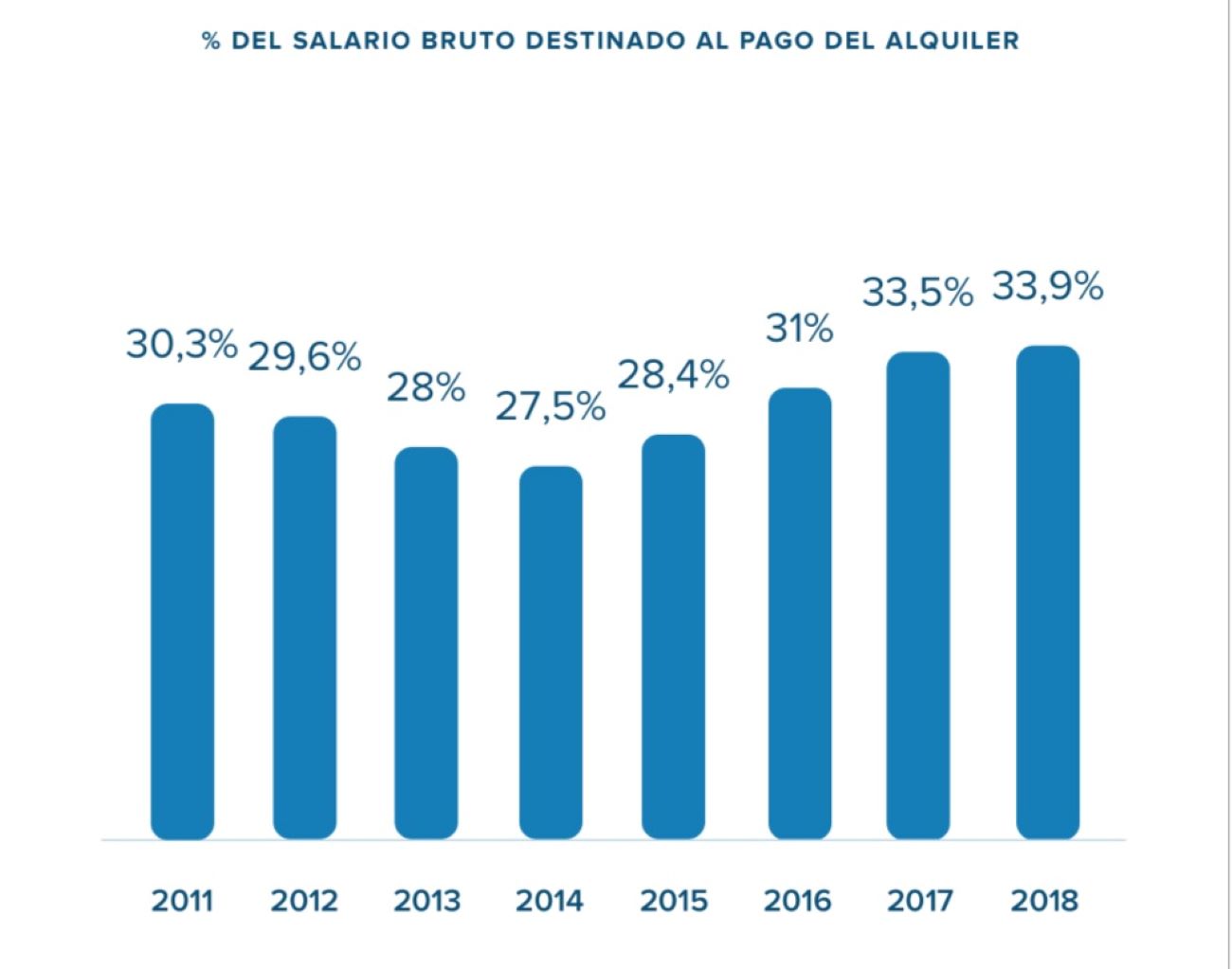 Si anteriormente veíamos que con el líder socialista los españoles han tenido que destinar casi un 24% más de su salario al pago del alquiler, entre 2012 y 2018, bajo el gobierno de Rajoy, el incremento de esta proporción fue del 14,5%. Es decir, con Sánchez este incremento ha superado en más de 9 puntos porcentuales el registrado con la anterior administración.