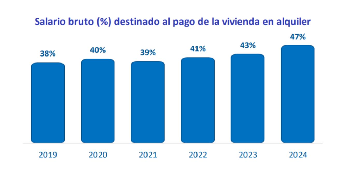 Asimismo, esta situación empeoró en casi todas las regiones del país, puesto que, de acuerdo con este informe, en 2024 aumentó la cantidad de dinero destinado a pagar el alquiler en 15 comunidades autónomas. Tan sólo en Baleares se redujo este porcentaje, al mismo tiempo que en Cantabria permaneció inalterado.