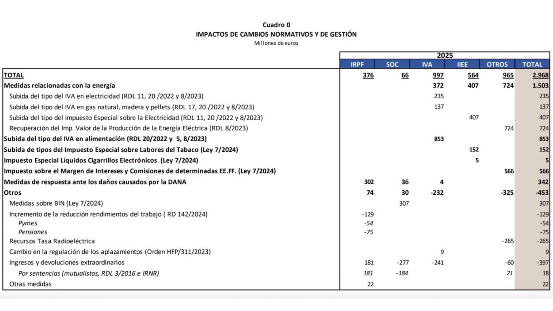 Y hay más. Porque los últimos datos oficiales de la Agencia Tributaria desvelan que, en ese mismo periodo, los "cambios normativos" han generado auténticos sablazos teledirigidos. Así, los cambios que afectan en 2025 a "medidas relacionadas con la energía" implican un aumento de recaudación fiscal de 1.503 millones.