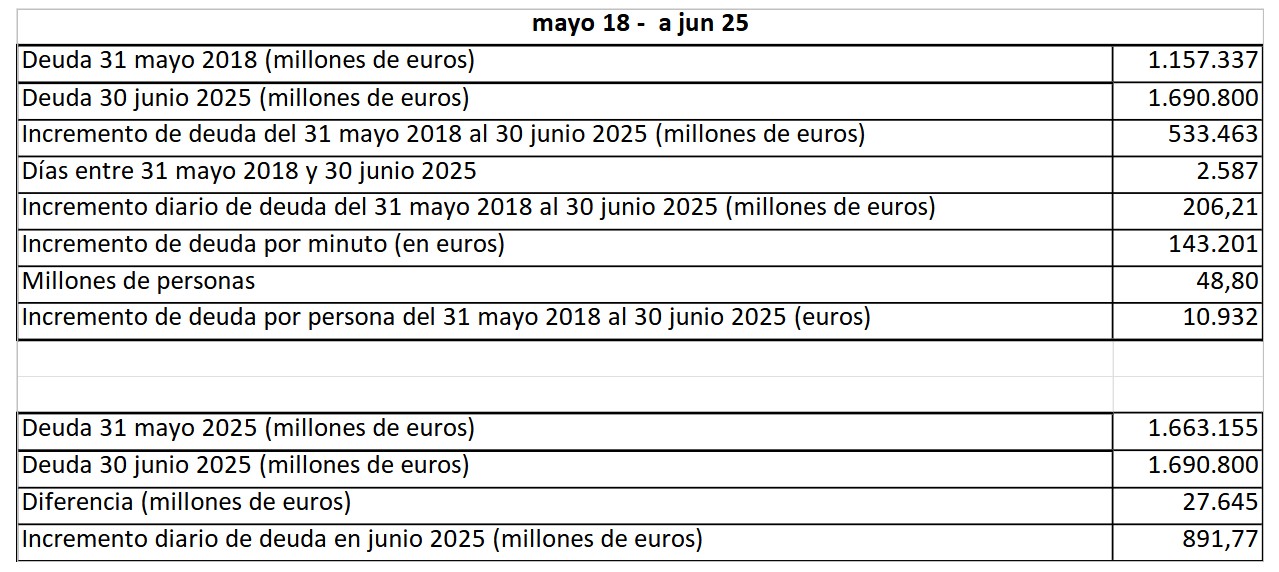 O dicho de otra manera, Sánchez incrementa la deuda cada minuto en 143.201 euros.