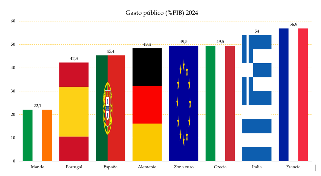 Alemania destina casi el 50% de su PIB al gasto público. Francia lo supera. España no se queda atrás. Y todo ello en un contexto de envejecimiento demográfico, productividad estancada y deuda pública disparada. Pretender mantener (o incluso ampliar) ese nivel de gasto sin reformas profundas es imposible.