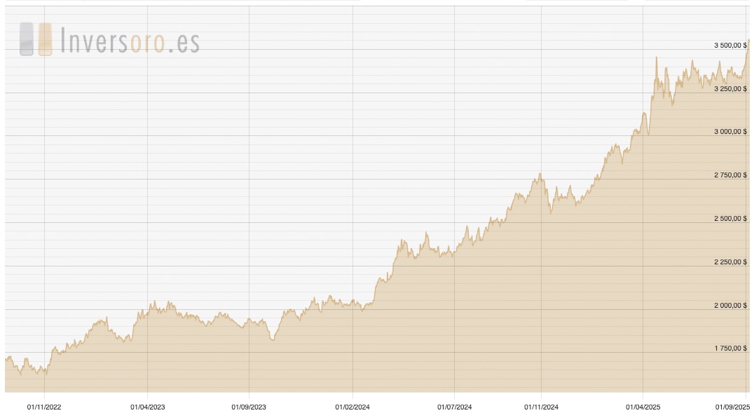El actual ciclo alcista ha llevado al metal precioso a los 3.500 dólares multiplicando prácticamente por 2. Como dice Gustavo Martínez "¿Todavía hay alguien que crea que no va a seguir subiendo?".