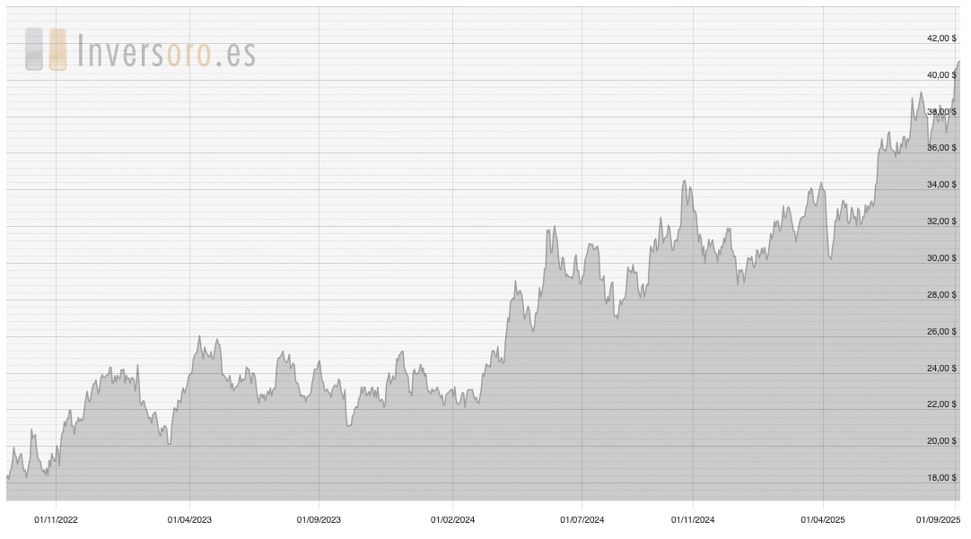 La correlación entre el oro y la plata siempre ha sido fuerte y en los últimos tres años ha crecido incluso más que el oro. Desde los 18 dólares de hace tres años a los más de 40 que cotiza ahora, (un 127%).