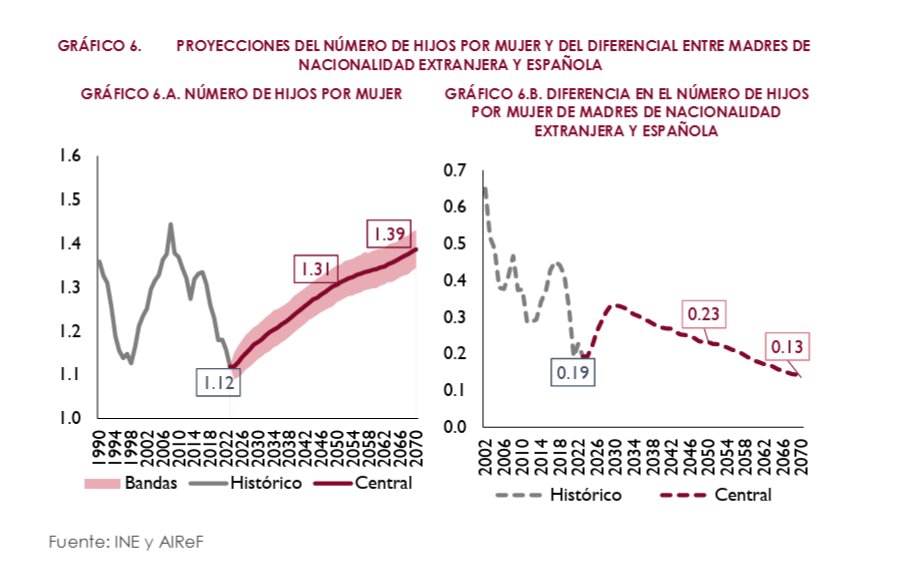 Estas proyecciones "se basan en un supuesto de convergencia del número de hijos por mujer hacia el de los países de nuestro entorno geográfico más próximo, para atenuar la brecha entre deseos y realidades reproductivas". Es decir, la AIReF proyecta que la natalidad en España se acercará a la de los países más cercanos al nuestro (los países europeos) y que eso ayudará a reducir la brecha entre los hijos que las mujeres desean tener y los hijos que finalmente acaban teniendo.