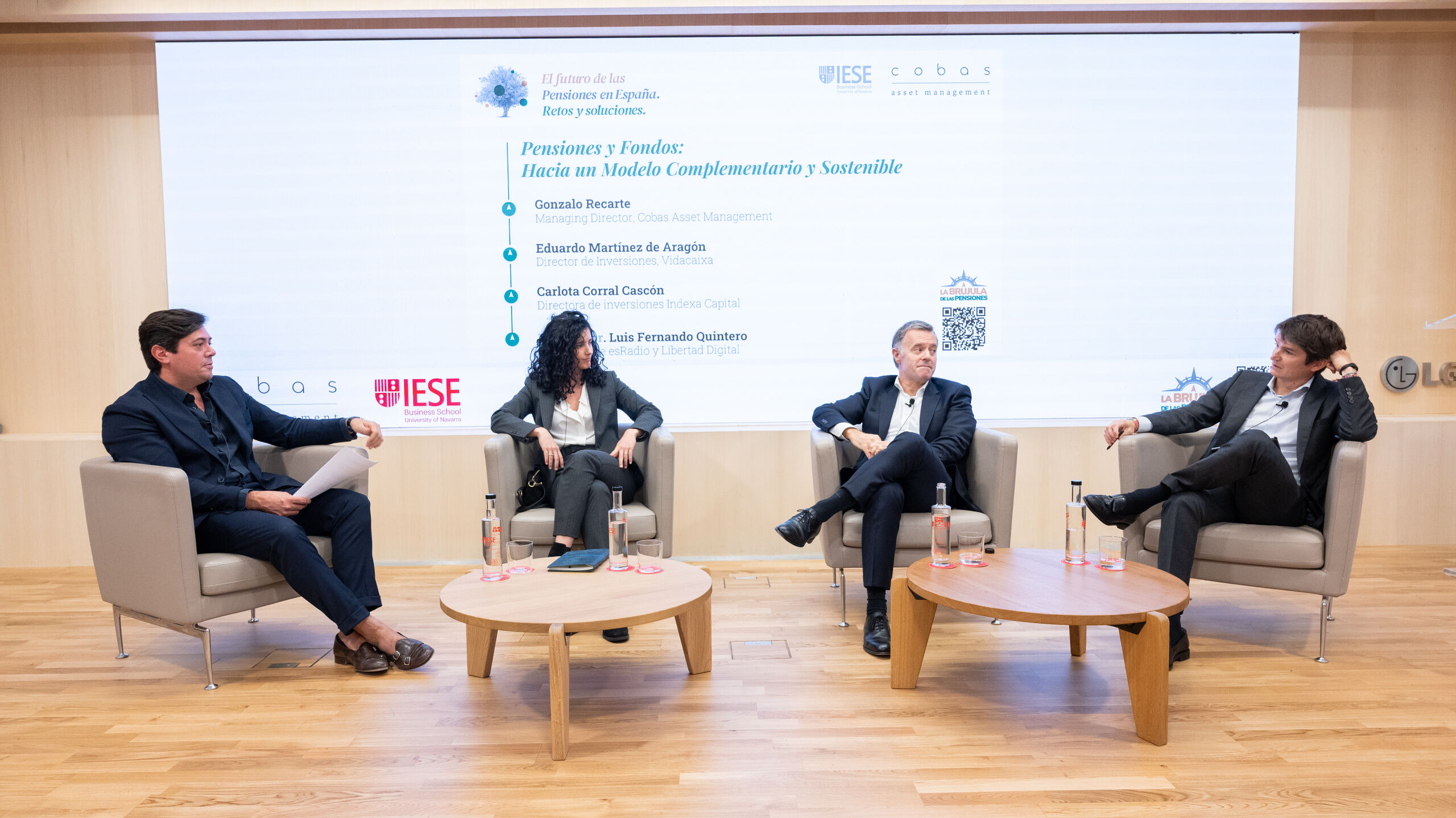 El campus madrileño del IESE acogió esta semana una jornada sobre pensiones y ahorro, organizado por la Cátedra Cobas AM sobre Ahorro y Pensiones en la que académicos, representantes del sector financiero y expertos en políticas públicas coincidieron en la urgencia de impulsar los sistemas complementarios de previsión ante los retos demográficos que afronta España.