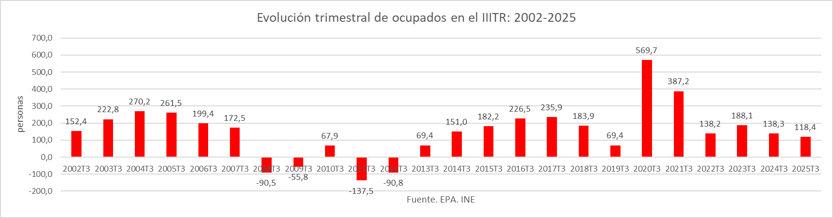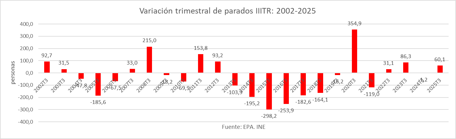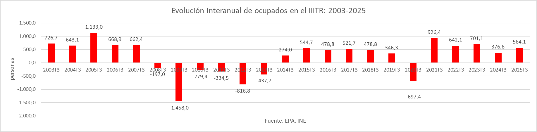 Los datos de empleo de la EPA del IIITR-2025 son mucho peores de lo que parecen una vez que se aparta el espejismo estacional que los envuelve. Los datos son los siguientes: