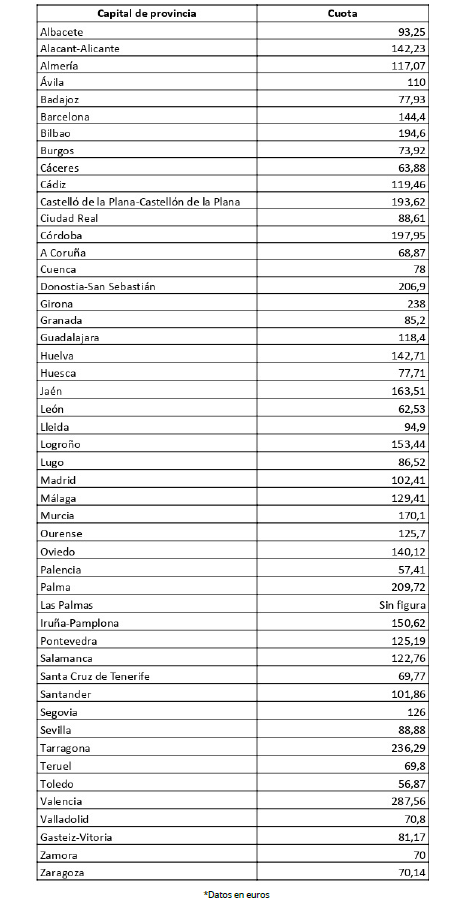 Según los cálculos de la ANIHPL, los ingresos de los consistorios españoles por la tasa podrían alcanzar los 3.488 millones de euros, cuya devolución podría generar "severos problemas presupuestarios en las corporaciones locales si prosperara la cascada de denuncias que se avecina por parte de los contribuyentes". En la presente tabla se observan los diferentes tasazos que han impuesto los ayuntamientos, desde los 57 euros en Toledo para un hogar medio hasta los 288 euros de Valencia.