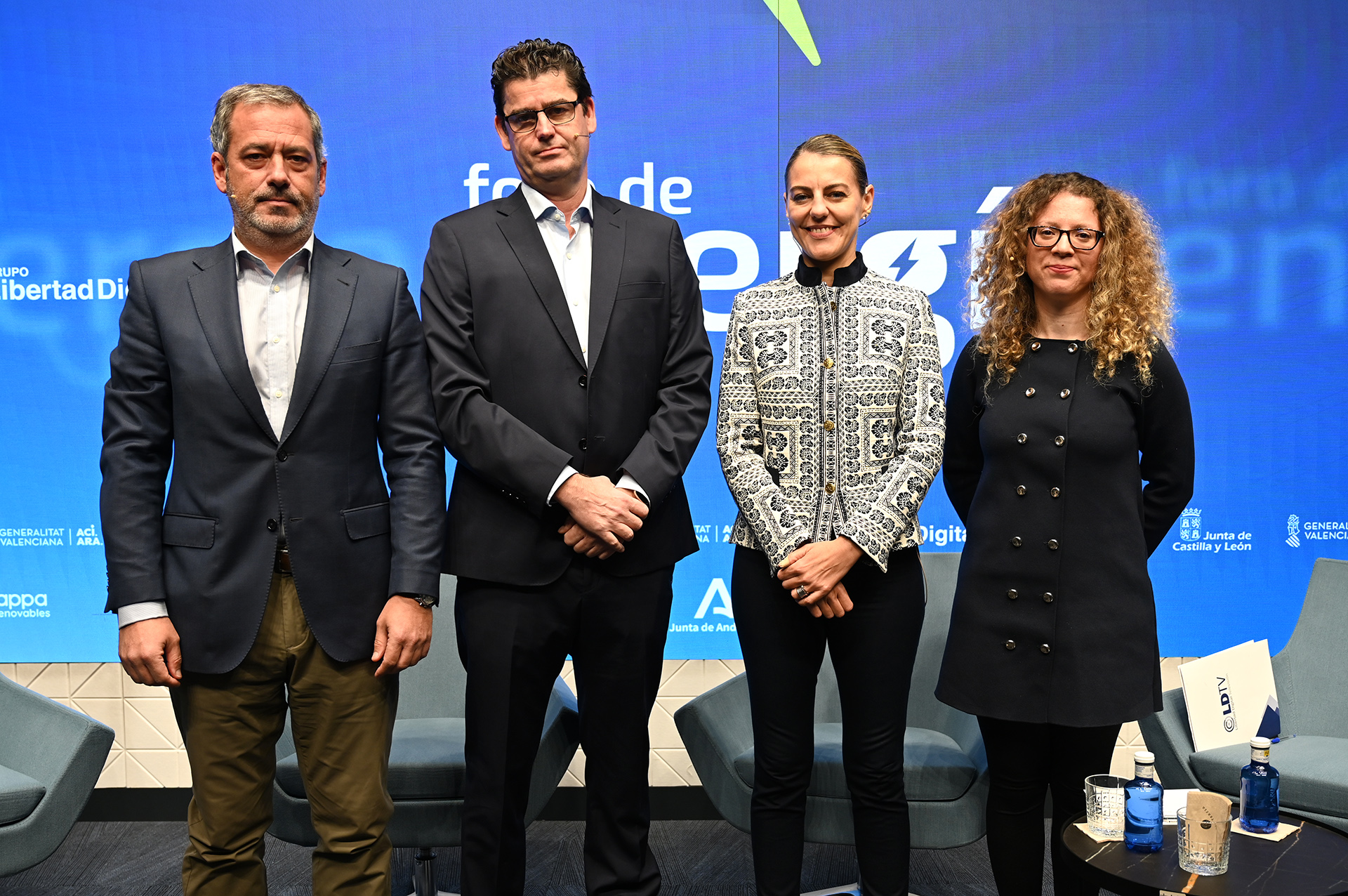Patxi Calleja, director de regulación de Iberdrola España; Marta Castro, directora de Regulación AELEC; José María González Moya director general de APPA Renovables y Beatriz García, redactora jefe de Libre Mercado.