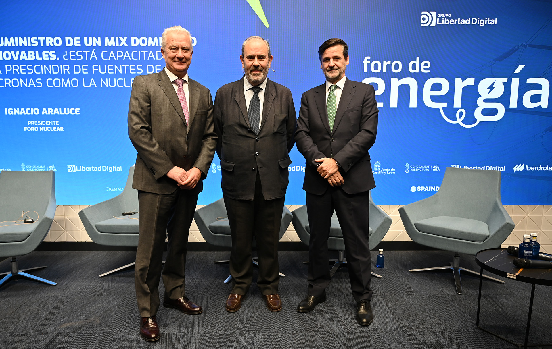 Ignacio Araluce, presidente de Foro Nuclear, con Luis Rodríguez, director general de Libertad Digital, y Javier Somalo, director del Grupo Libertad Digital.