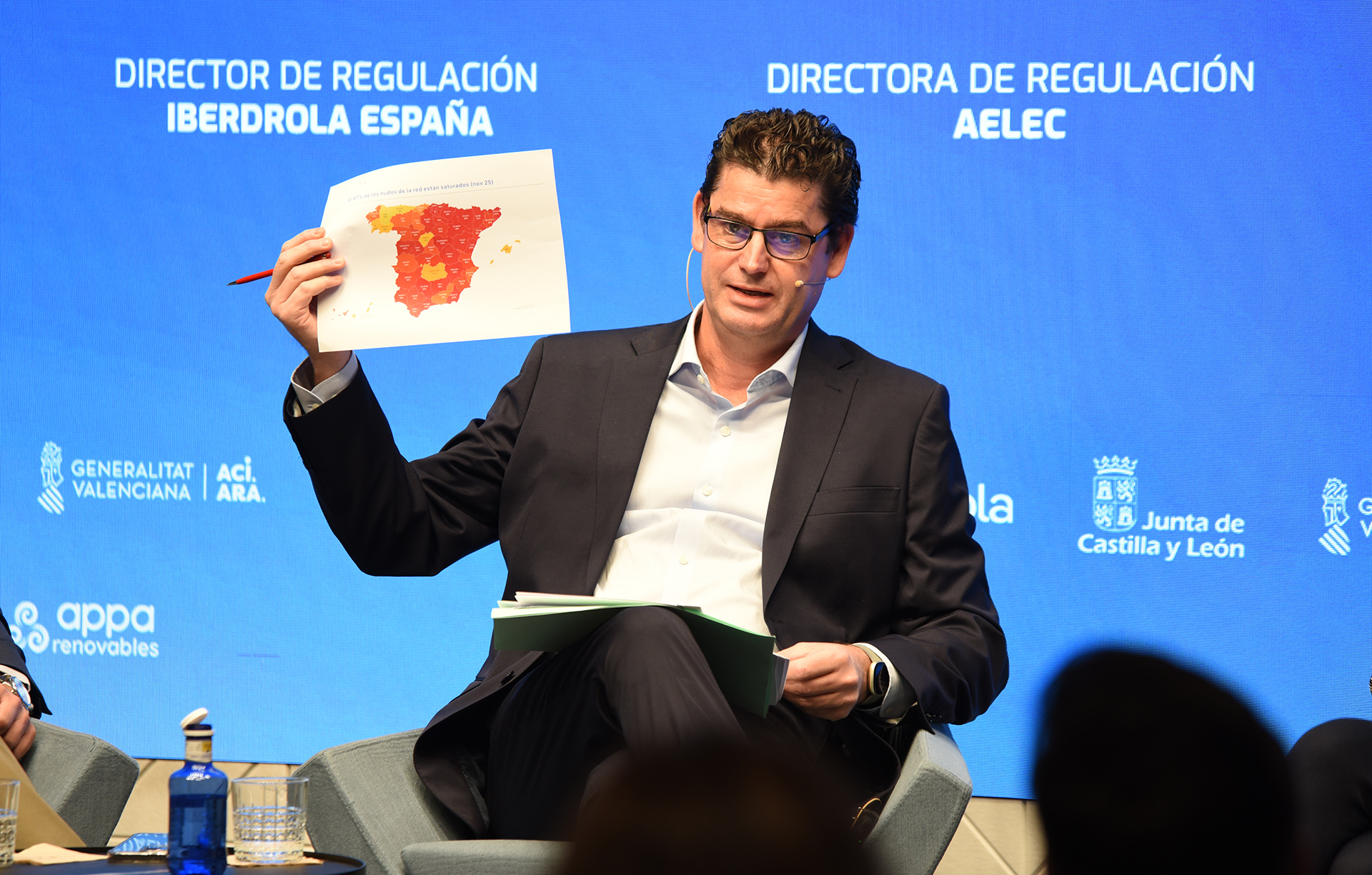 Patxi Calleja, director de regulación de Iberdrola, muestra el mapa de la saturación eléctrica en España.