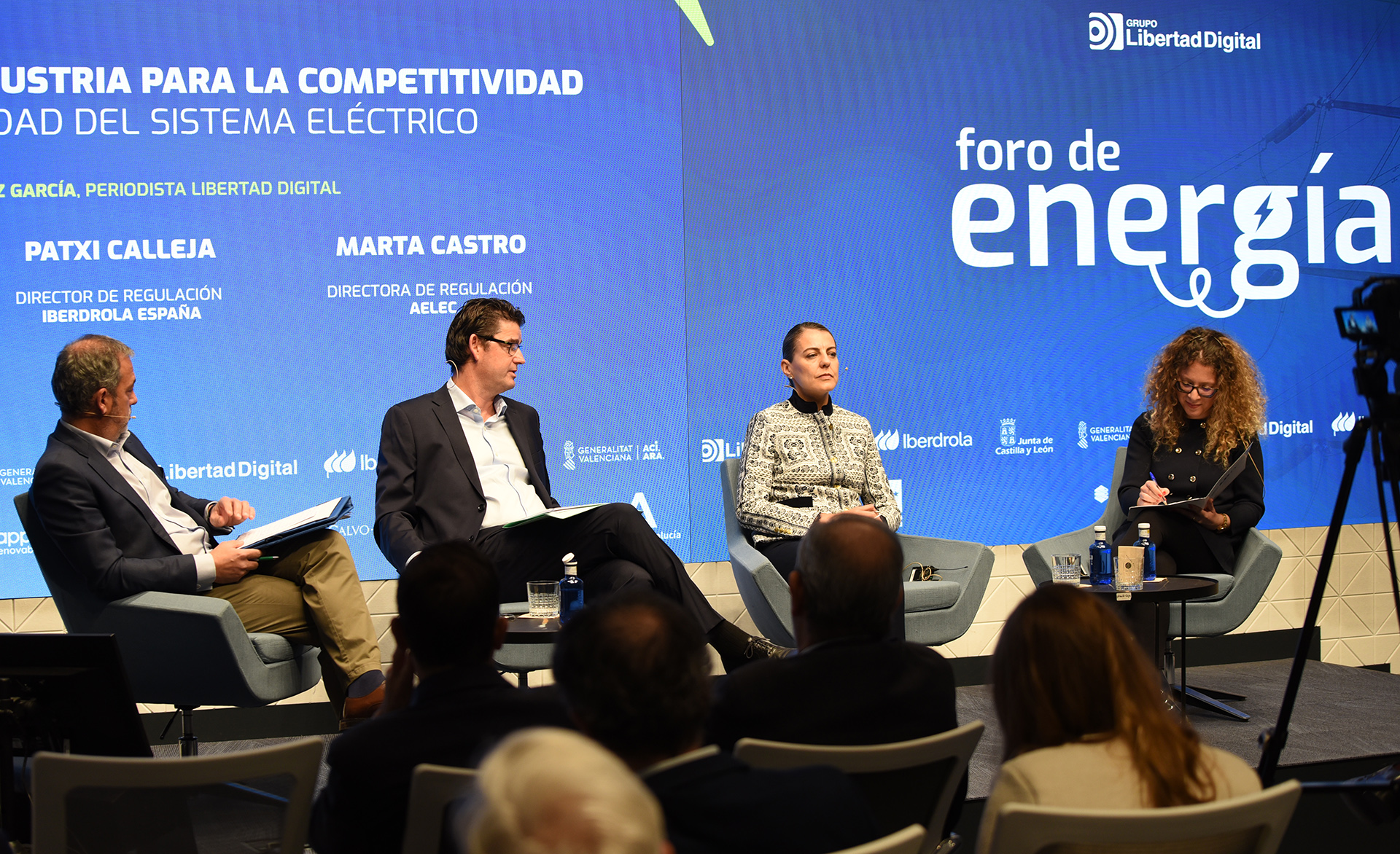 Patxi Calleja, director de Regulación de Iberdrola España, Marta Castro, directora de Regulación de AELEC, José María González Moya director general de APPA Renovables y Beatriz García, redactora jefe de Libertad Digital, debatieron sobre las Propuestas de la industria para la competitividad y la sostenibilidad del sistema eléctrico.