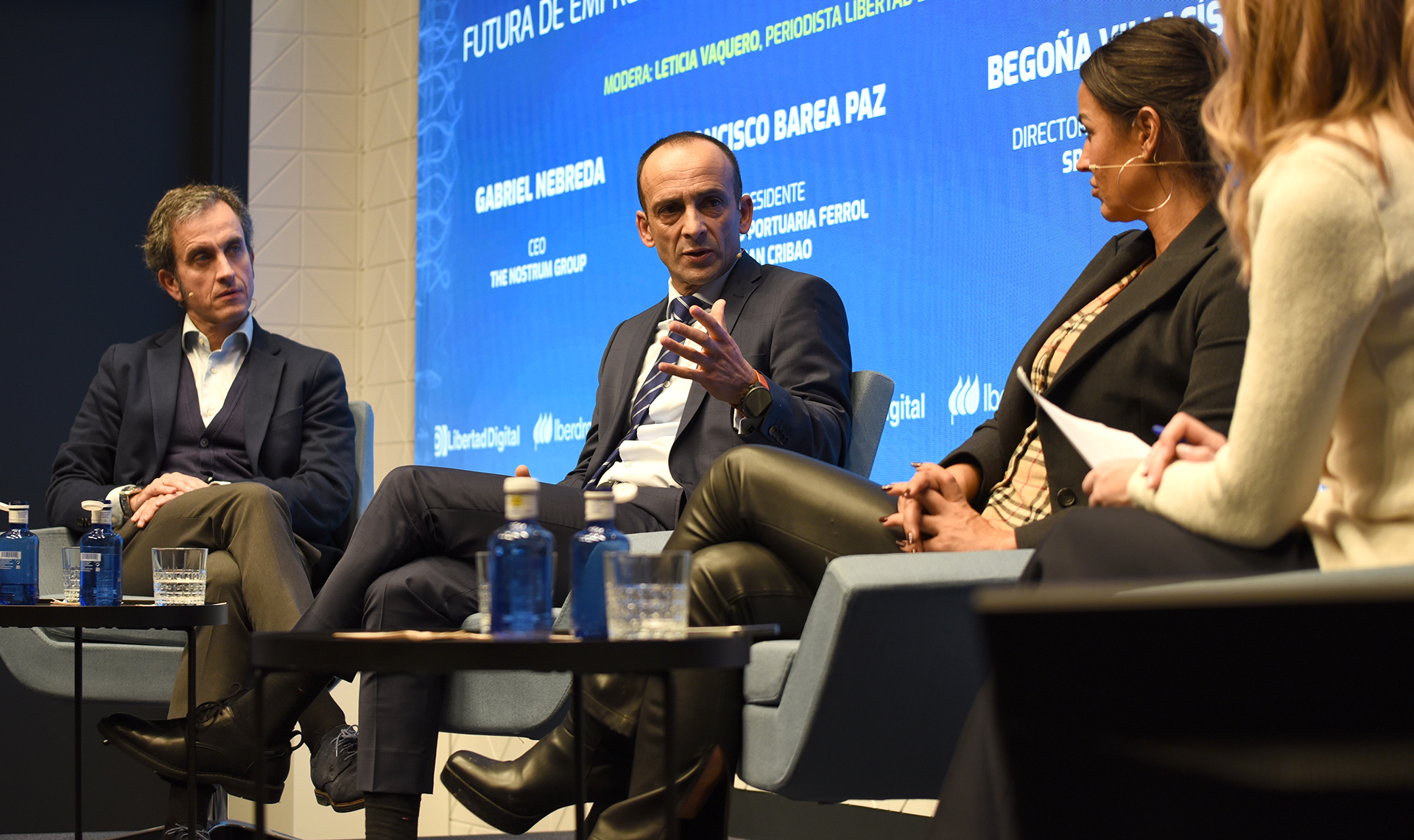 Begoña Villacís, directora ejecutiva SPAIN DC, Francisco Barea Paz, presidente de la Autoridad Portuaria Ferrol-San Cribao y Gabriel Nebreda, CEO de The Nostrum Group reclamaron "alguien al mando" que gestione y anticipe los problemas