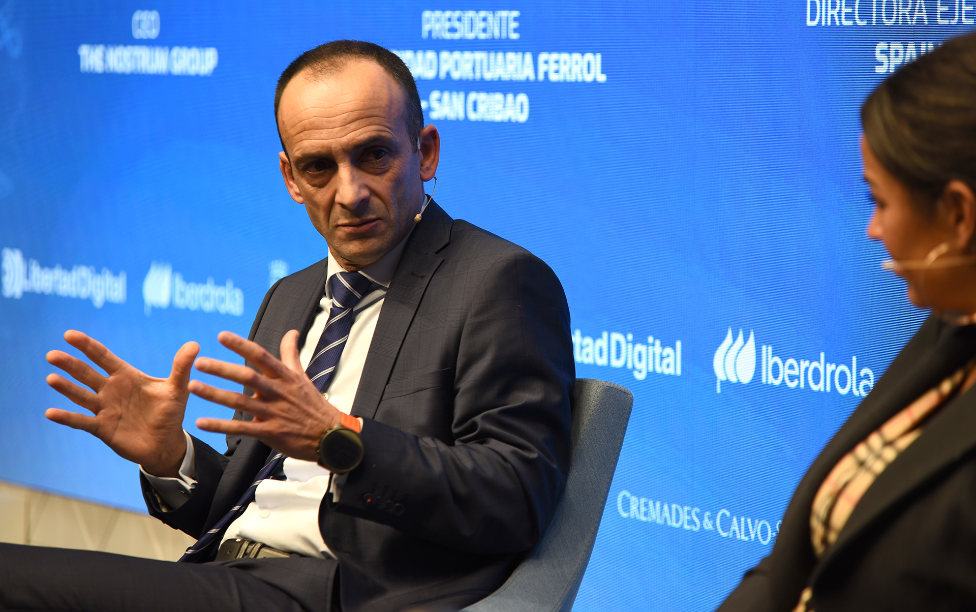 Francisco Barea Paz, presidente de la Autoridad Portuaria de Ferrol, junto a Gabriel Nebreda, CEO de The Nostrum Group en su charla sobre los desafíos del desarrollo eléctrico.