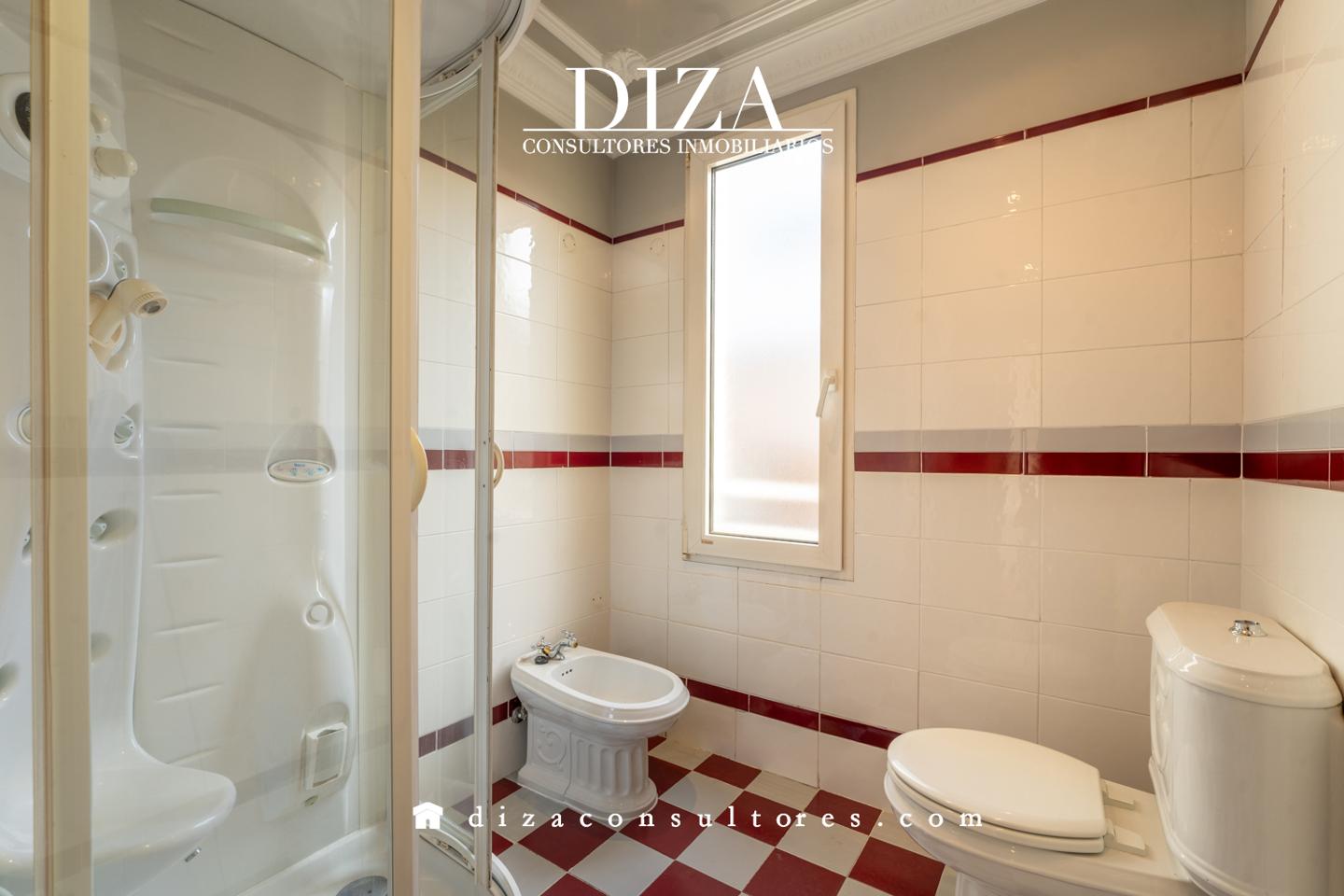 Uno de los baños incluye plato de ducha y una pequeña ventana que da a la calle.