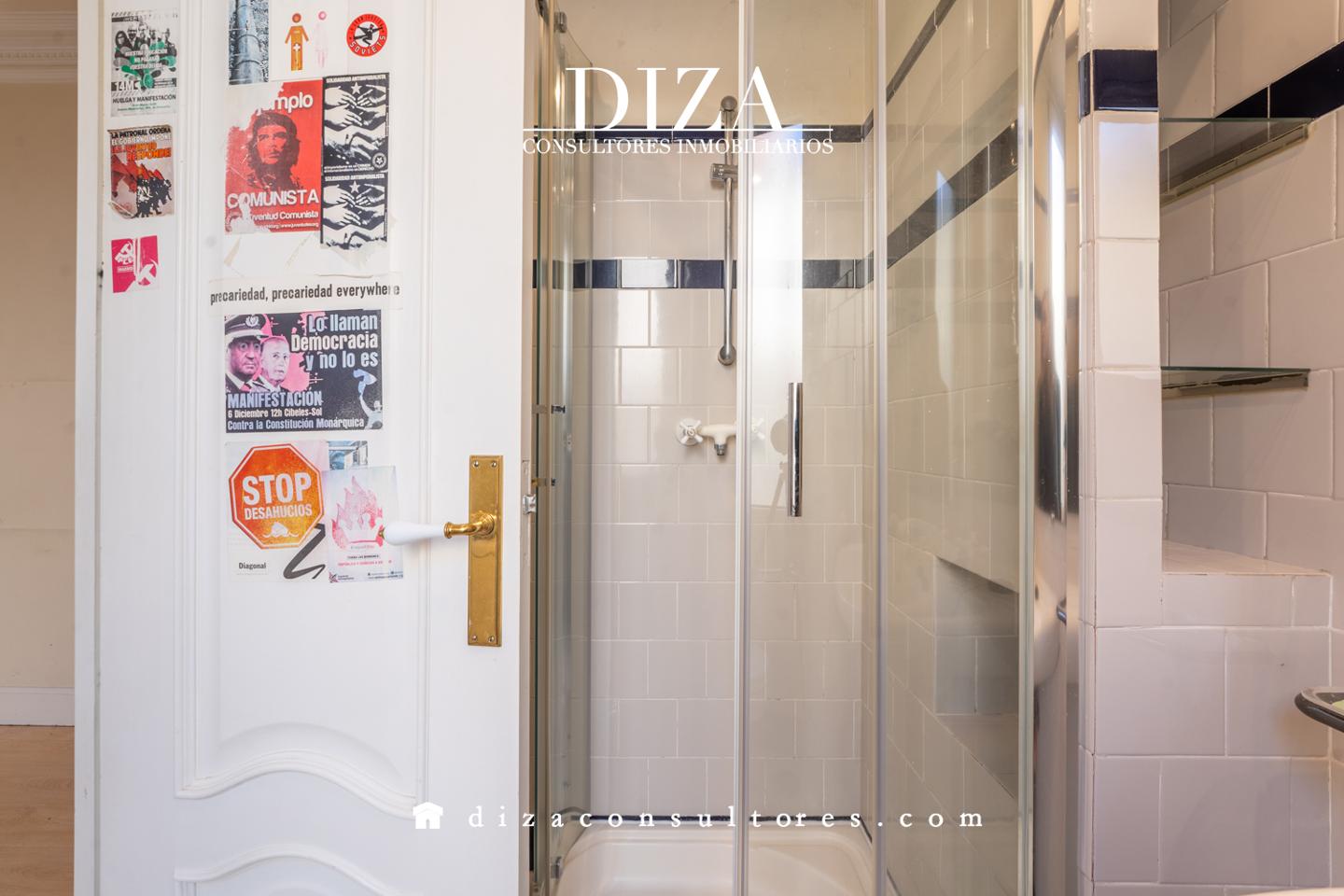 Como podemos comprobar, en la puerta de uno de los baños la familia que habitaba en este ático tenía pegadas imágenes del Che Guevara y otras proclamas de extrema izquierda que siguen puestas y aparecen, de hecho, en el anuncio de la inmobiliaria.