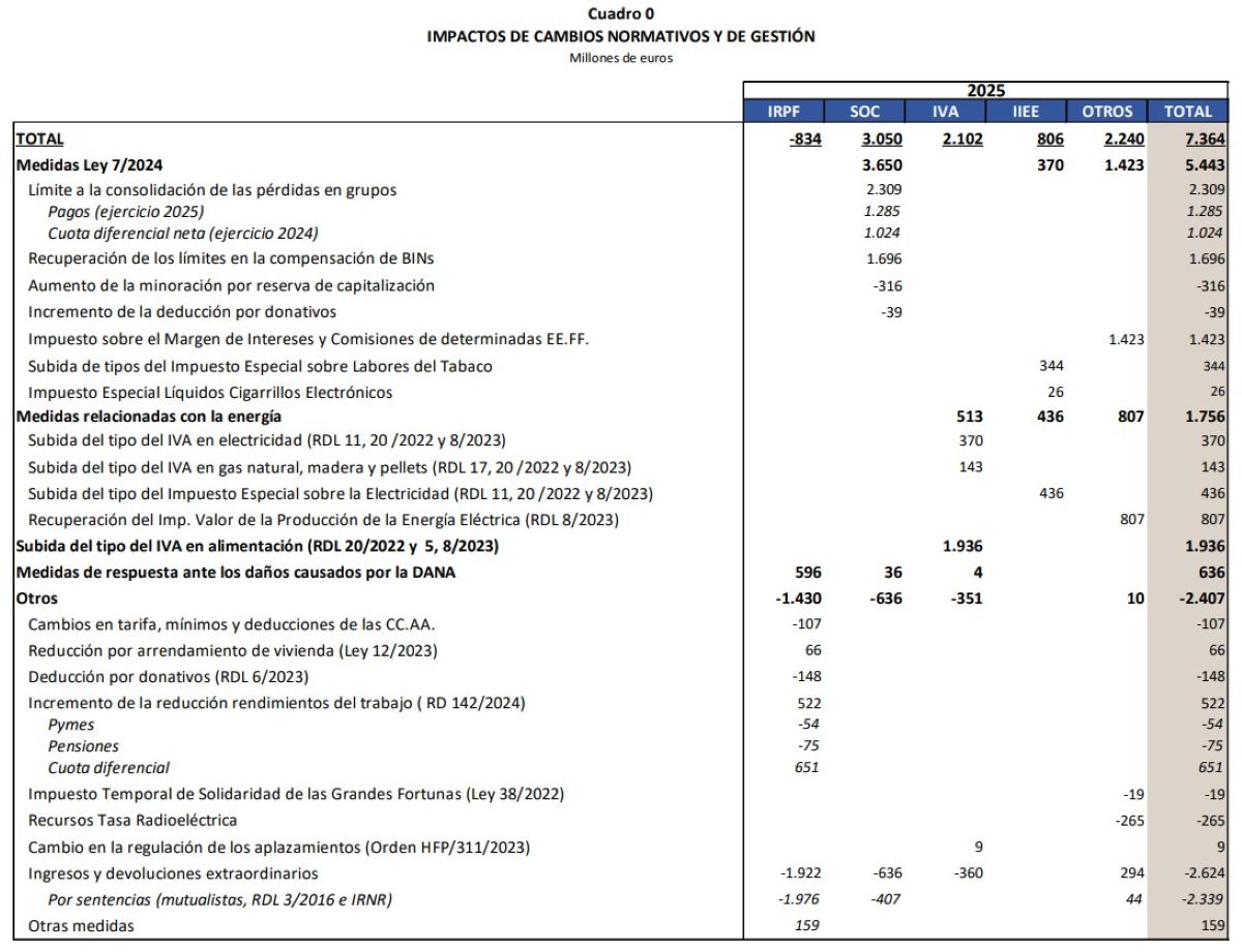 Por otra parte, las modificaciones de las normas tributarias han supuesto unos ingresos de más de 7.300 millones de euros hasta el mes de noviembre. Concretamente, desde el Fisco destacan que "los cambios normativos y en la gestión supusieron, hasta noviembre, ingresos adicionales por un valor de 7.364 millones". Dicho de otro modo, estos impuestos supusieron 2,7 puntos del 10% de crecimiento acumulado en el año.