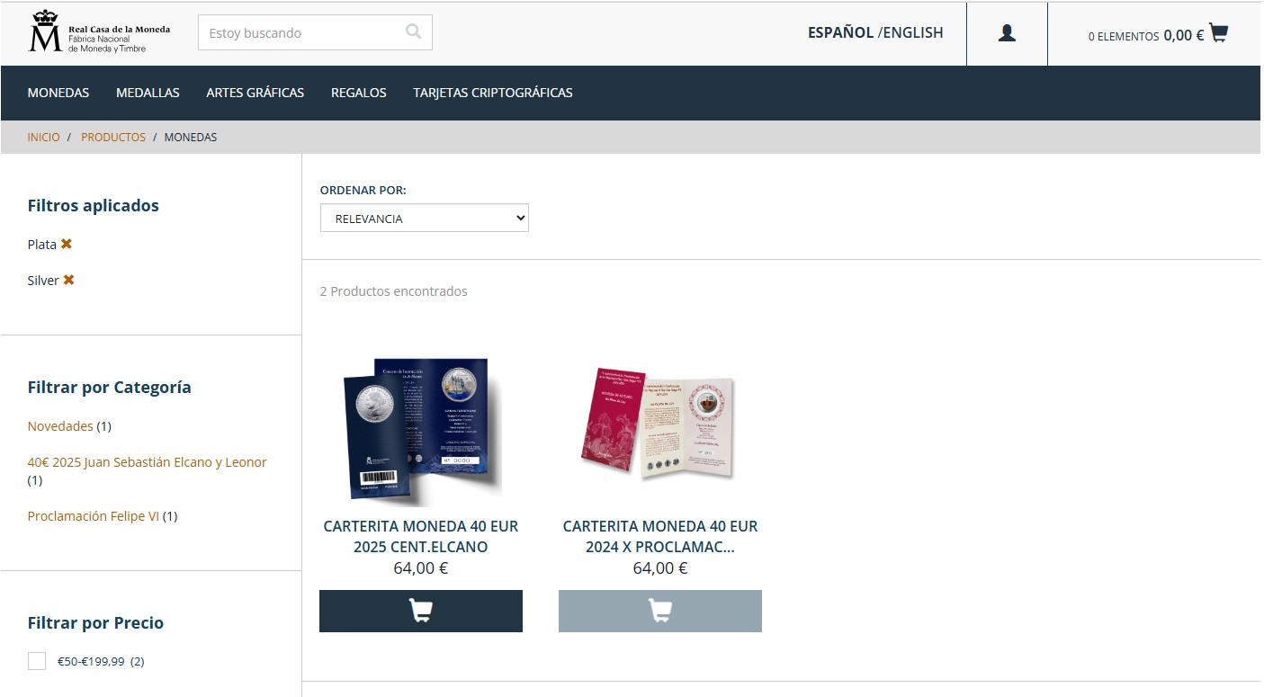 Del mismo modo, la web también oferta otra cartera que fue elaborada para celebrar el décimo aniversario de su proclamación, en cuyo anverso se reproduce el retrato del Rey, mientras que en el reverso se reproduce en color una imagen de la Corona Real. Sin embargo, a diferencia de la otra moneda, en este caso no se permite "añadir al carrito" este producto. Además, cabe destacar que, aunque el valor facial de ambas monedas sea de 40 euros, su precio de venta se sitúa en los 64 euros por unidad.