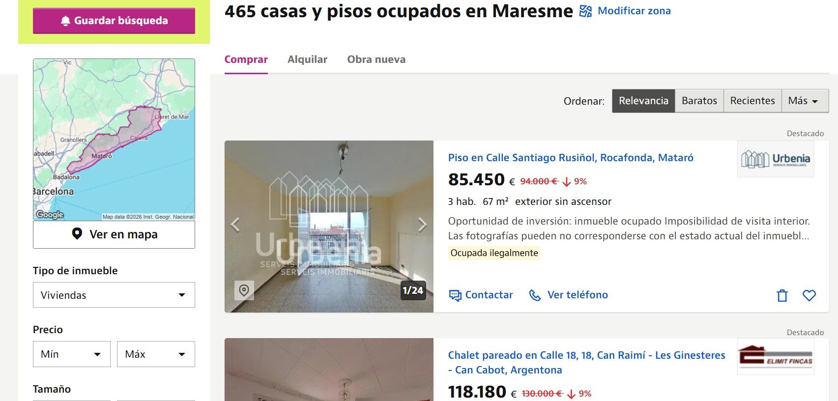 Una prueba del desamparo al que se enfrentan los propietarios puede encontrarse en portales inmobiliarios como Idealista, que desde el año pasado incluye en su web un filtro con los pisos que tienen a la venta donde residen okupas.