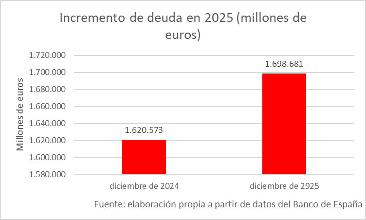 En diciembre, la deuda subió en 410 millones de euros y mantiene, así, su tendencia alcista, como ha hecho Sánchez durante todo su mandato. Sólo en 2025, se incrementó la deuda en 78.108 millones.