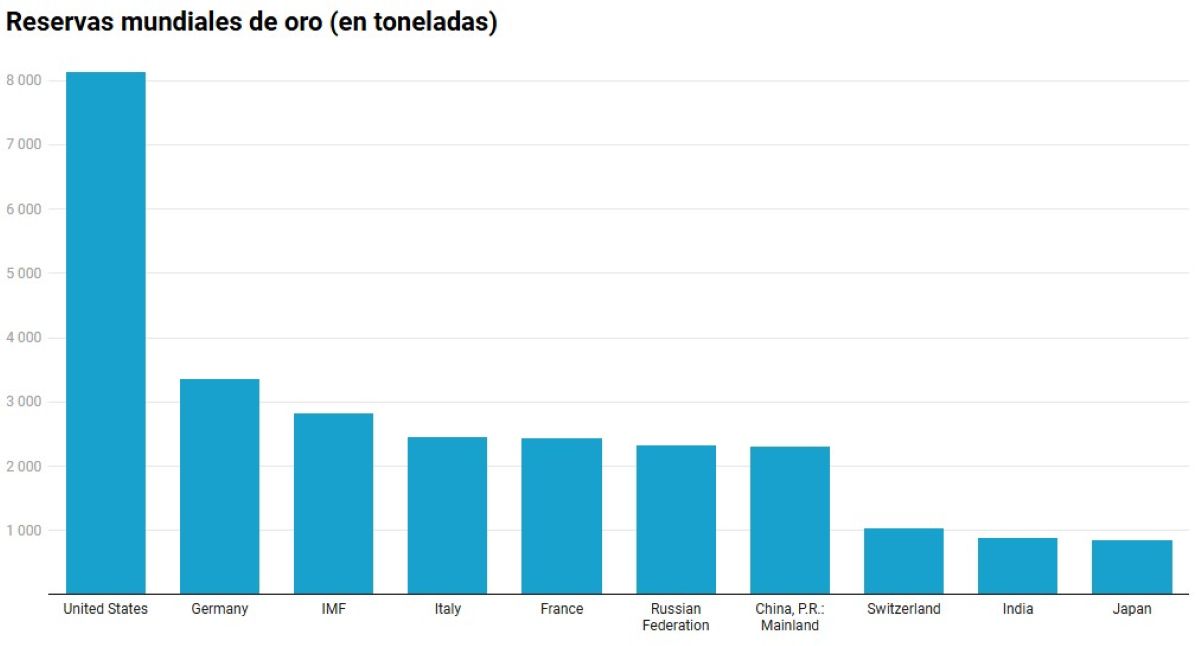 Asimismo, en sexto lugar encontramos a Rusia, con unas reservas de 2.326,5 toneladas de oro, mientras que las reservas que acumula China alcanzan las 2.306,3 toneladas. Además, las reservas de Suiza suman un total de 1.039,9 toneladas. Finalmente, encontramos a India, con 880,2 toneladas de oro, y Japón, que acumula unas reservas de 880,2 toneladas. En cambio, España se sitúa en el puesto 22 del ranking, acumulando unas reservas de 281,6 toneladas de oro.