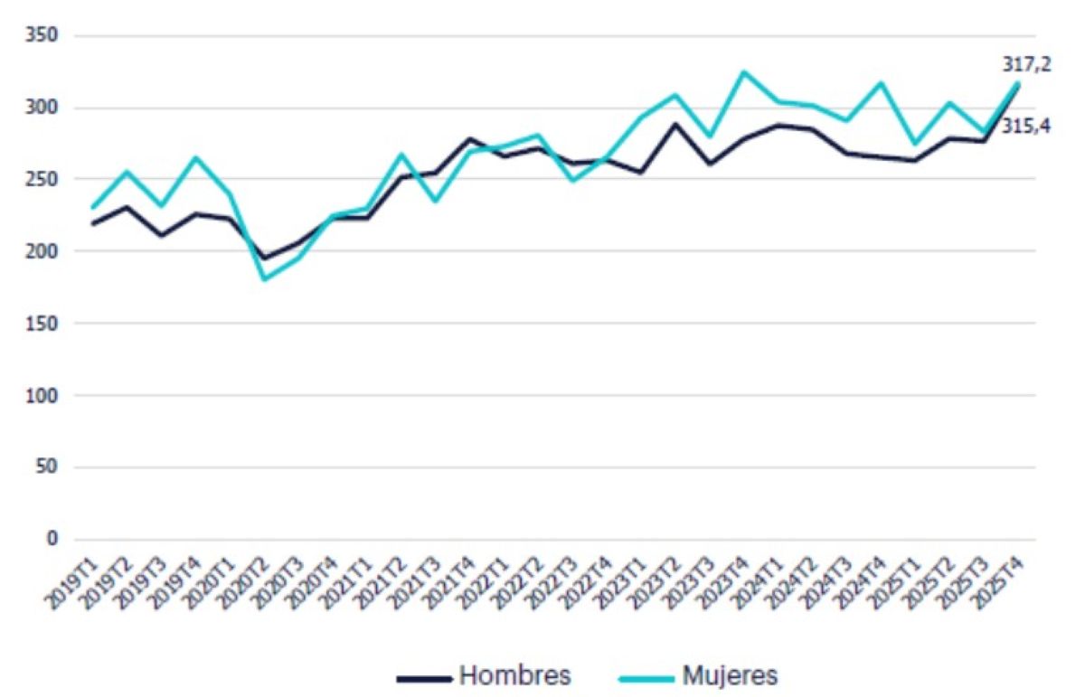 Sin embargo, el informe también incide en que los ocupados con un segundo empleo se sitúan en máximos históricos. De este modo, se explica cómo "al cierre del ejercicio de 2025, un total de 632.800 personas ocupadas contaban con un empleo secundario, 50.000 más que un año antes y la cifra más elevada registrada", si bien se explica que "también hay que tener en cuenta que en los últimos años tanto la población activa como la ocupada han aumentado mucho en España".