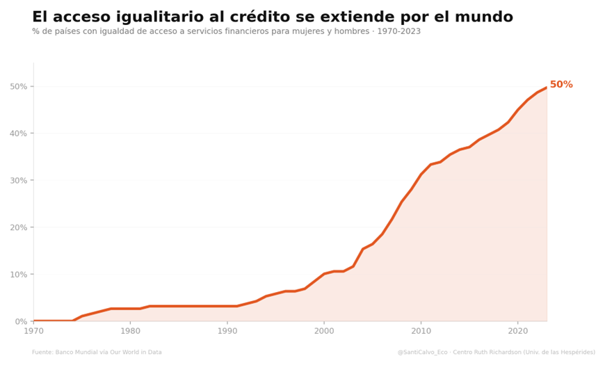 Sin acceso al crédito no hay emprendimiento ni autonomía económica. En 1970, ningún país garantizaba igualdad de acceso a servicios financieros. Hoy lo hace la mitad del mundo.