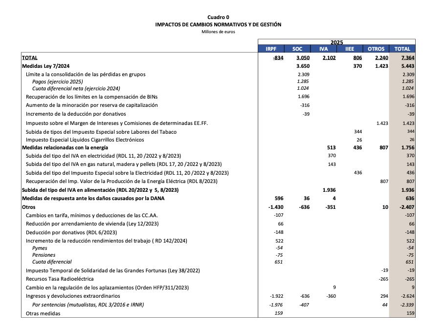Es más, el informe reconoce que los cambios normativos y en la gestión supusieron, hasta noviembre, ingresos adicionales por un valor de 7.364 millones o, lo que es lo mismo, 2,7 puntos del 10% de crecimiento acumulado en el año". "El importe de los impactos netos hasta noviembre es superior en casi 800 millones a la cifra estimada hasta octubre (7.364 millones frente a 6.575).