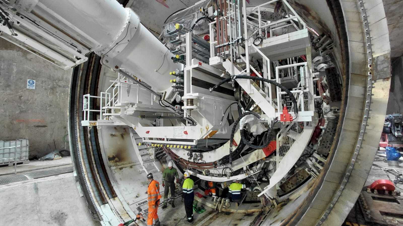 El avance de la infraestructura se apoya en un despliegue logístico sin precedentes. Un equipo de 300 operarios trabaja en turnos continuos los siete días de la semana para mantener un ritmo medio de 15 metros diarios, lo que supone una progresión de 500 metros al mes. El proceso es cíclico: el cabezal giratorio extrae la tierra a través de un tornillo sin fin mientras, cada 1,7 metros, la máquina se detiene para instalar un anillo de hormigón armado compuesto por siete dovelas prefabricadas.