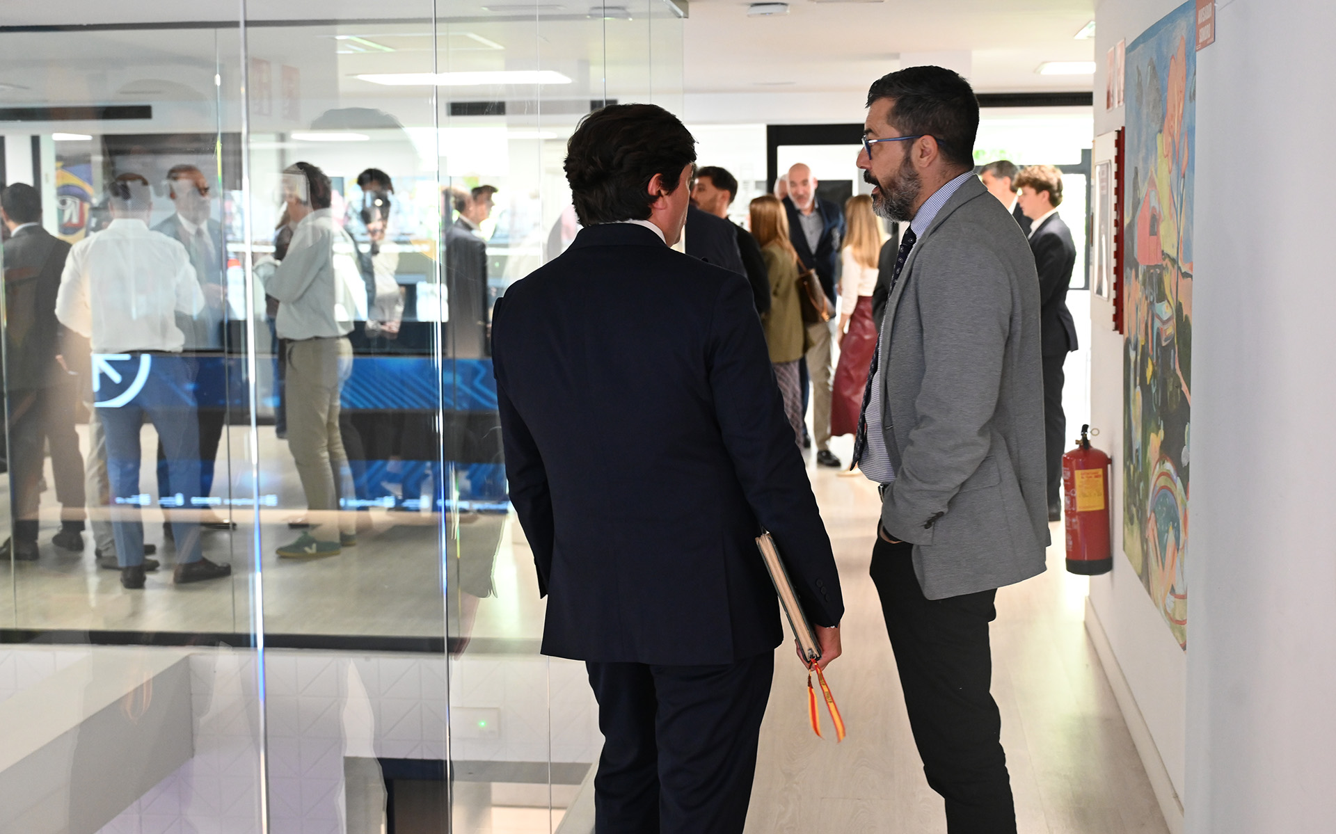 Antonio Flores, ingeniero superior de Telecomunicación y en Electrónica por la Universidad de Sevilla, MBA por la escuela de negocios IESE y profesor; y el CEO de Wooptix, José Manuel Rodríguez, en el networking tras las intervenciones.