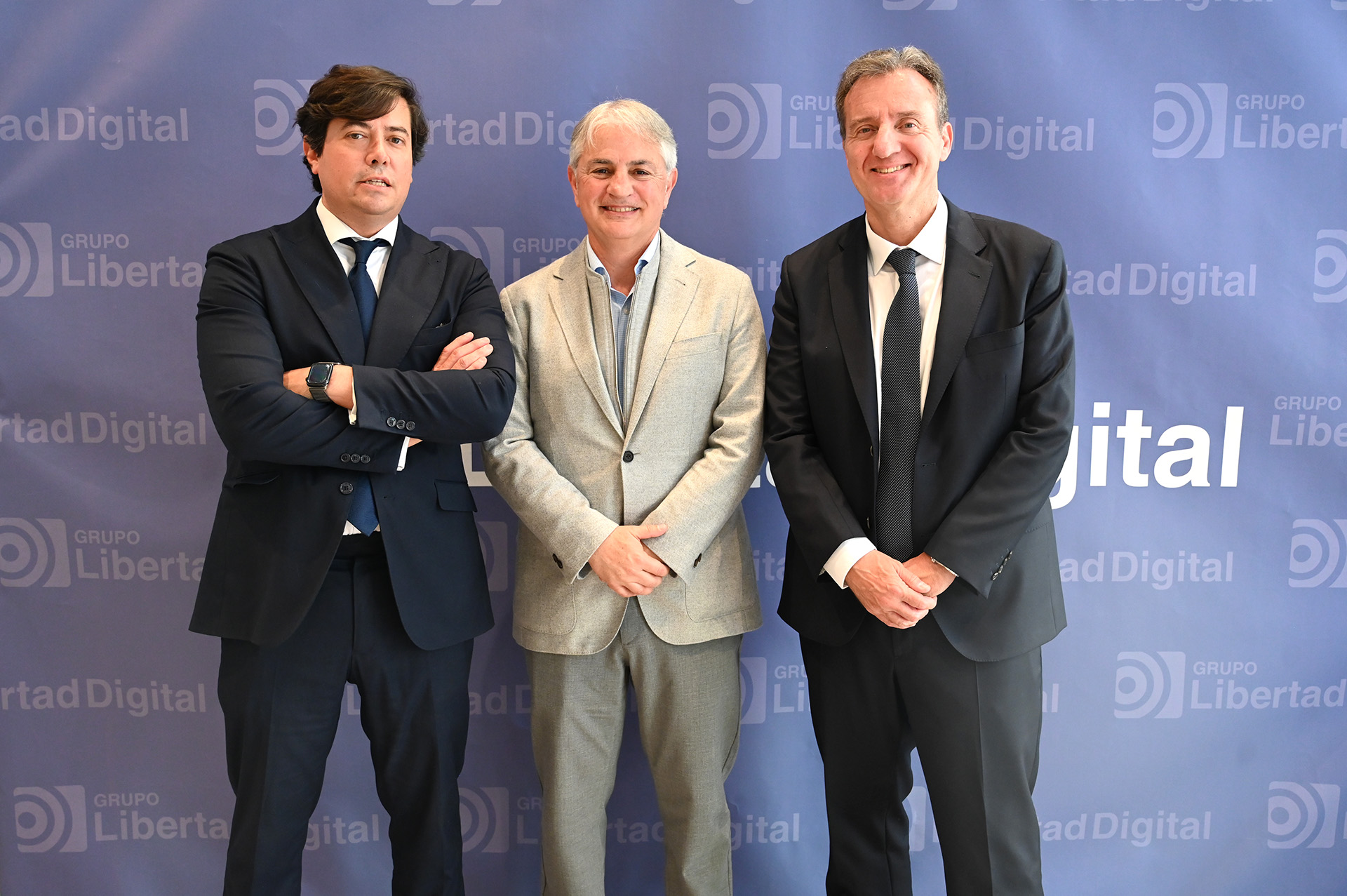 De izquierda a derecha: Luis Fernando Quintero, periodista de Libertad Digital especializado en economía; José Manuel Rodríguez, CEO de Wooptix; y Juan Rodríguez Plaza, director de relaciones institucionales de Libertad Digital.
