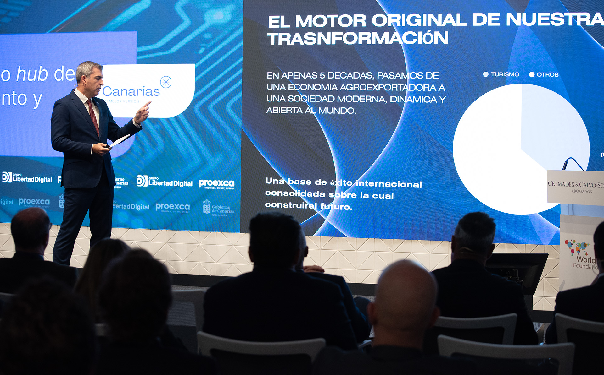 Manuel Domínguez, vicepresidente de Canarias, reivindica el archipiélago como "el mejor clima para invertir". El Gobierno canario ha presentado en Madrid su apuesta como hub europeo en un encuentro organizado por Libertad Digital.