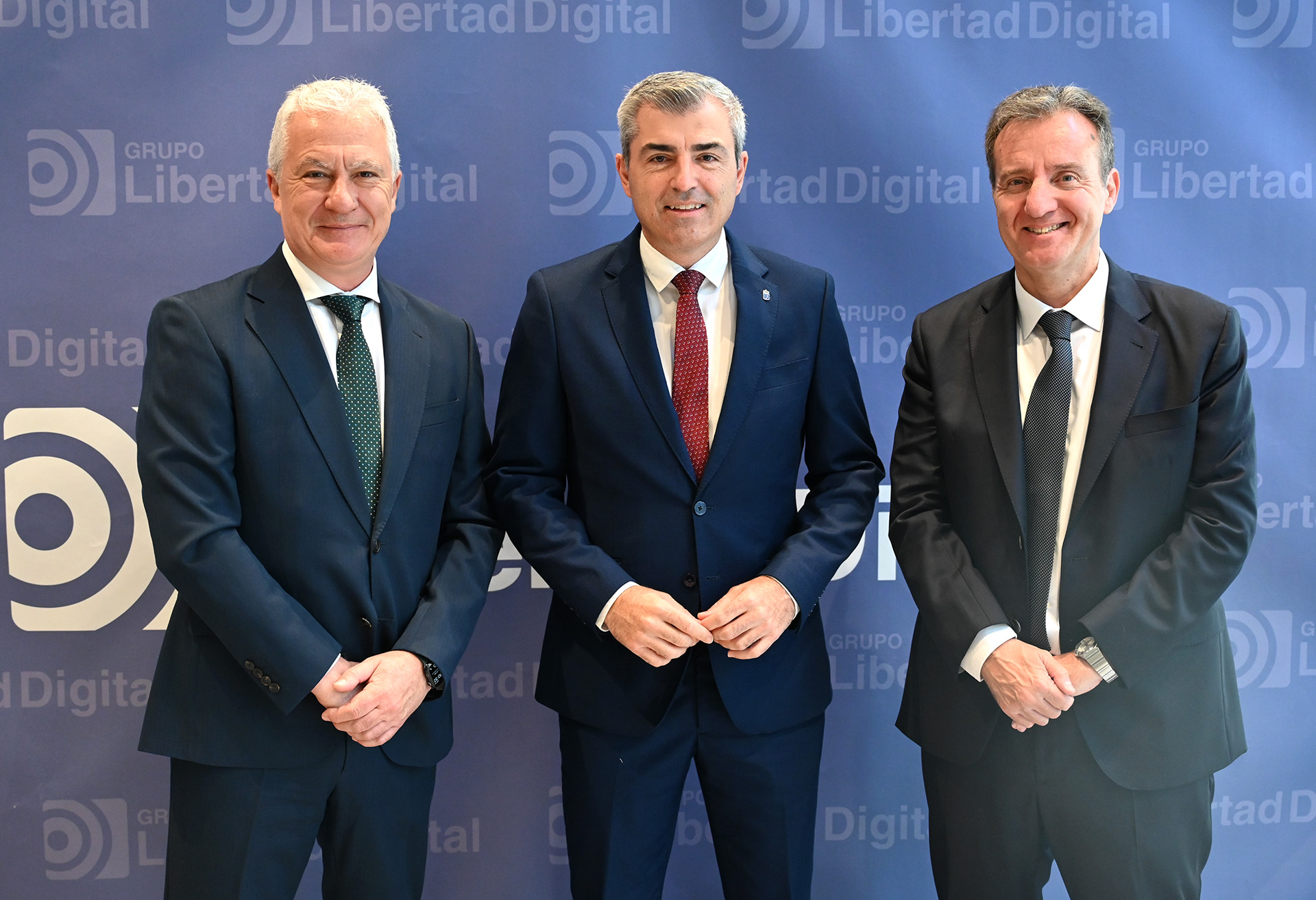De izquierda a derecha: Luis Rodríguez, director general de Libertad Digital; Manuel Domínguez, vicepresidente de las Islas Canarias; y Juan Rodríguez Plaza, director de relaciones institucionales de Libertad Digital.