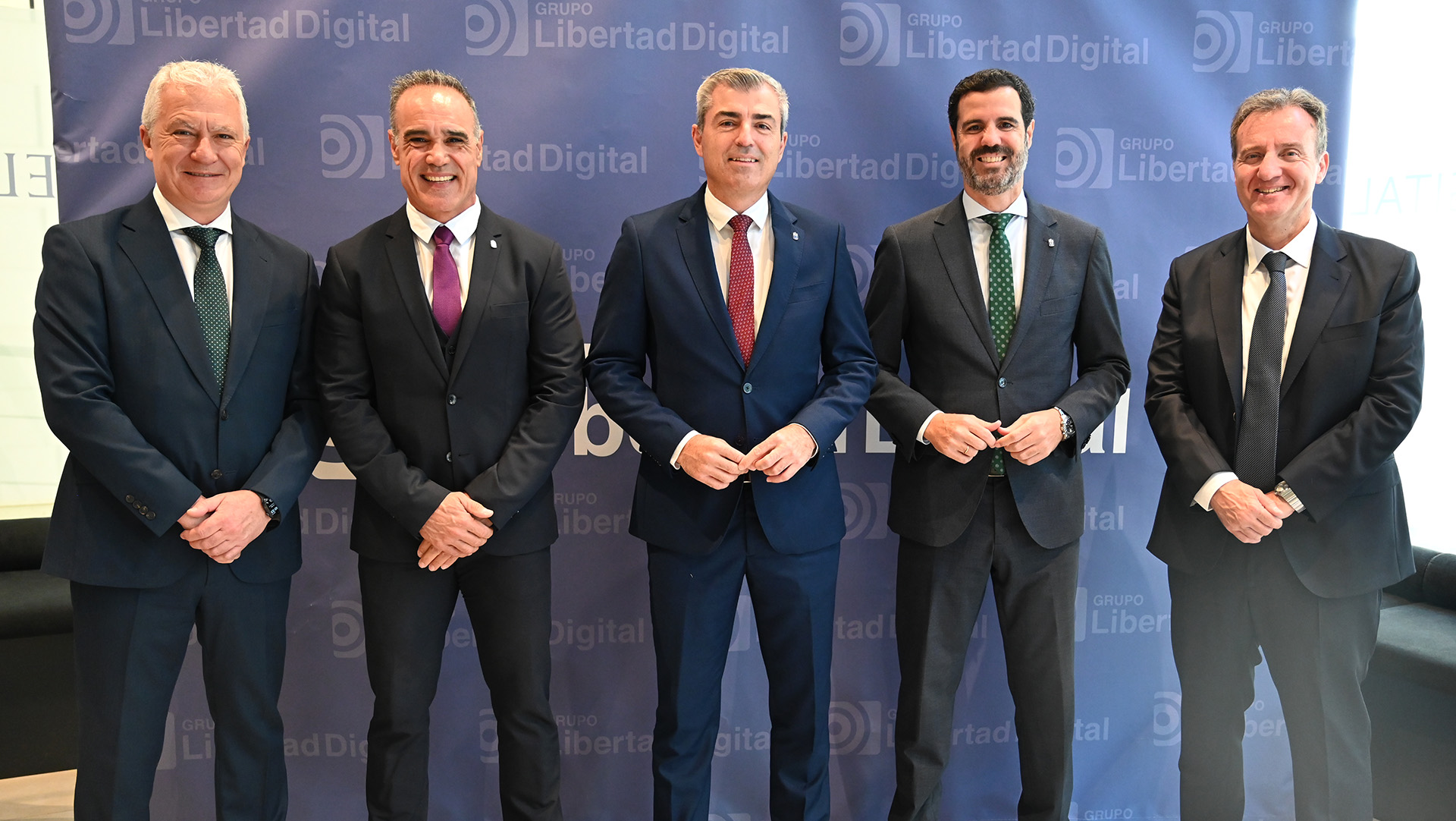 De izquierda a derecha: Luis Rodríguez, director general de Libertad Digital; José Ramón Barrera Hernández, comisionado del Régimen Económico y Fiscal (REF) de Canarias; Manuel Domínguez, vicepresidente de las Islas Canarias; Gustavo González de Vega, viceconsejero de Economía e Internacionalización del Gobierno de Canarias y vicepresidente de Proexca (Sociedad Canaria de Fomento Económico); y Juan Rodríguez Plaza, director de relaciones institucionales de Libertad Digital.