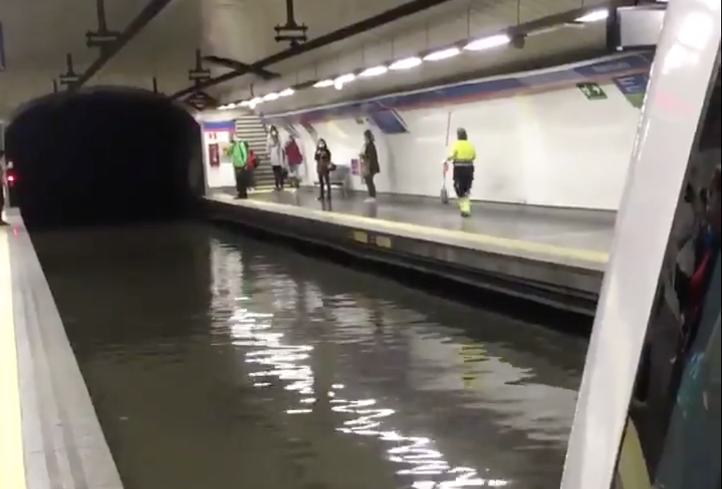 Inundaciones en #línea2 del @metro_madrid la altura de Noviciado.#Madrid pic.twitter.com/Tiw2QpBbI5