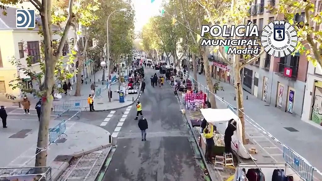 La Policía Local utiliza drones para controlar la reapertura del Rastro en Madrid