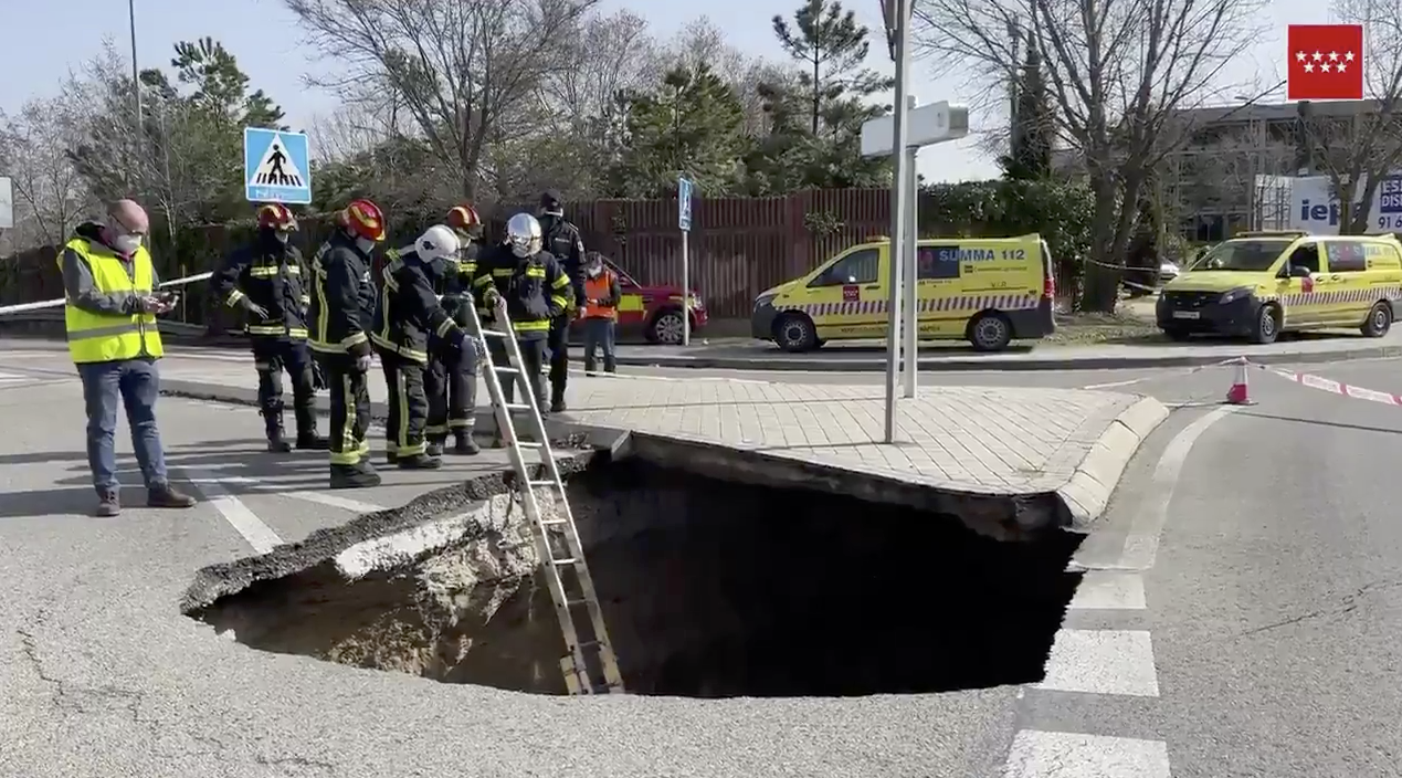 Bomberos de la Comunidad de Madrid han rescatado este mediodía a un varón de 36 años que ha caído con su vehículo en un socavón a la entrada de una rotonda en la calle Las Norias a la altura de la Renfe de Majadahonda, ha informado un portavoz de Emergencias 112 Comunidad de Madrid.
