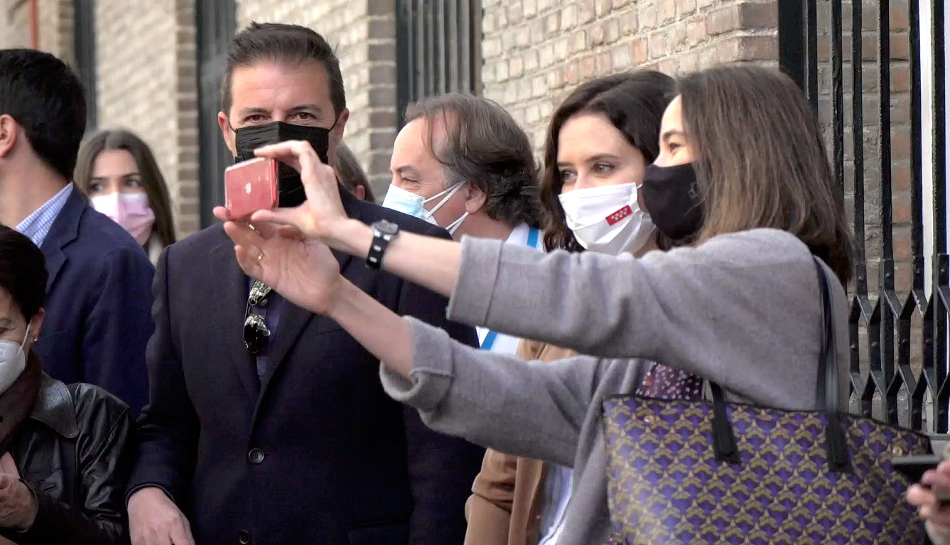 Ayuso ha ejercido su derecho al voto a las 10.26 horas en el colegio concertado La Inmaculada Marillac, en el distrito de Chamberí, después de esperar la cola como el resto de ciudadanos, que no han parado de reclamarle fotos. A su llegada, la dirigente popular ha sido recibida con aplausos y al grito de "presidenta, presidenta".